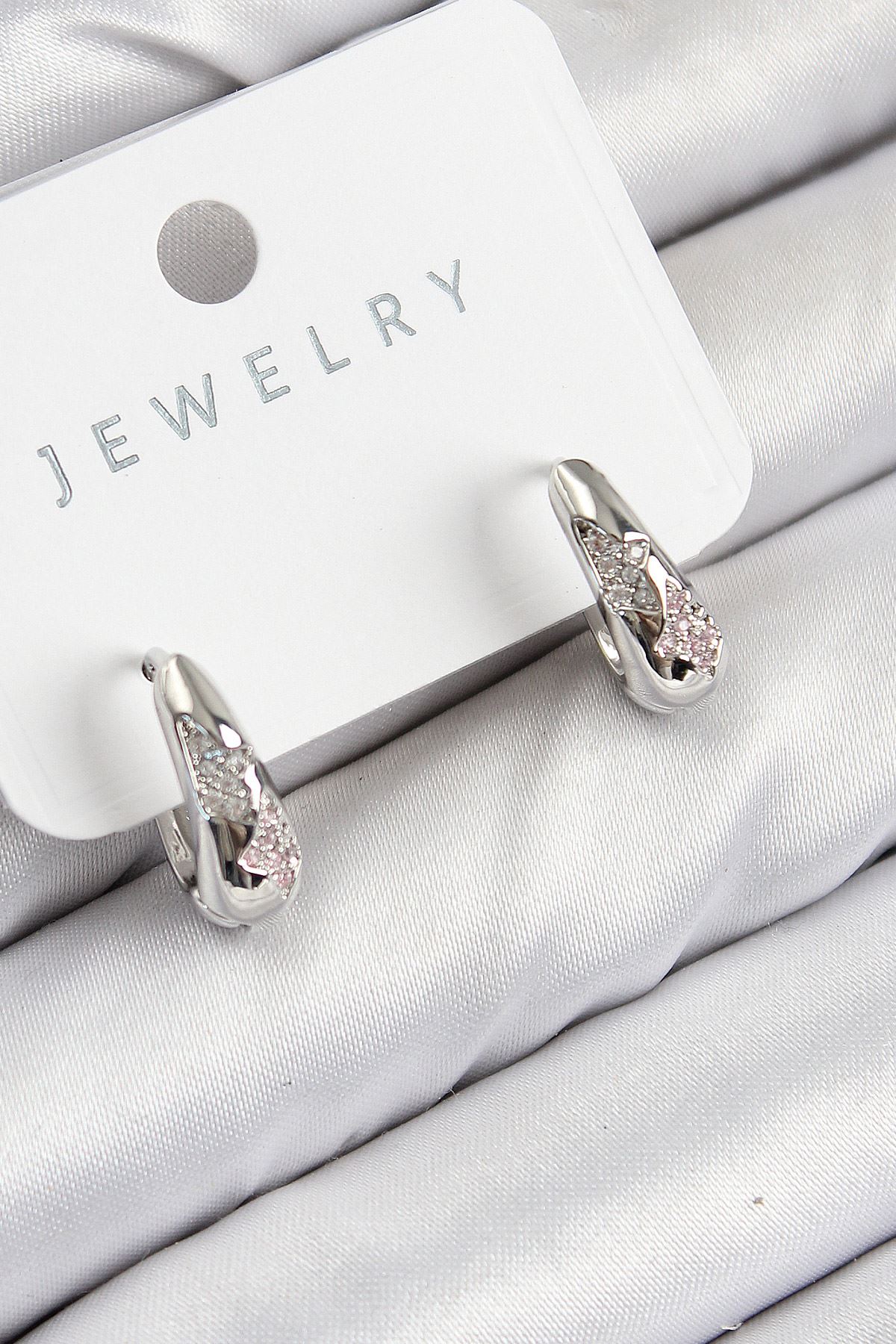 YRTCL Pirinç Zirkon Taş Desenli Model Gümüş Renk Kadın Küpe