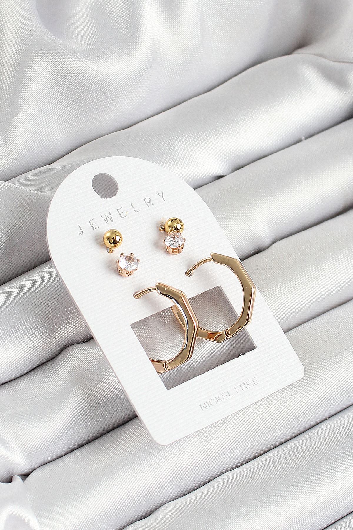 YRTCL Pirinç Zirkon Taş Ve Kemik Halka Figürlü Gold Renk 3'lü Çift Kadın Küpe Set