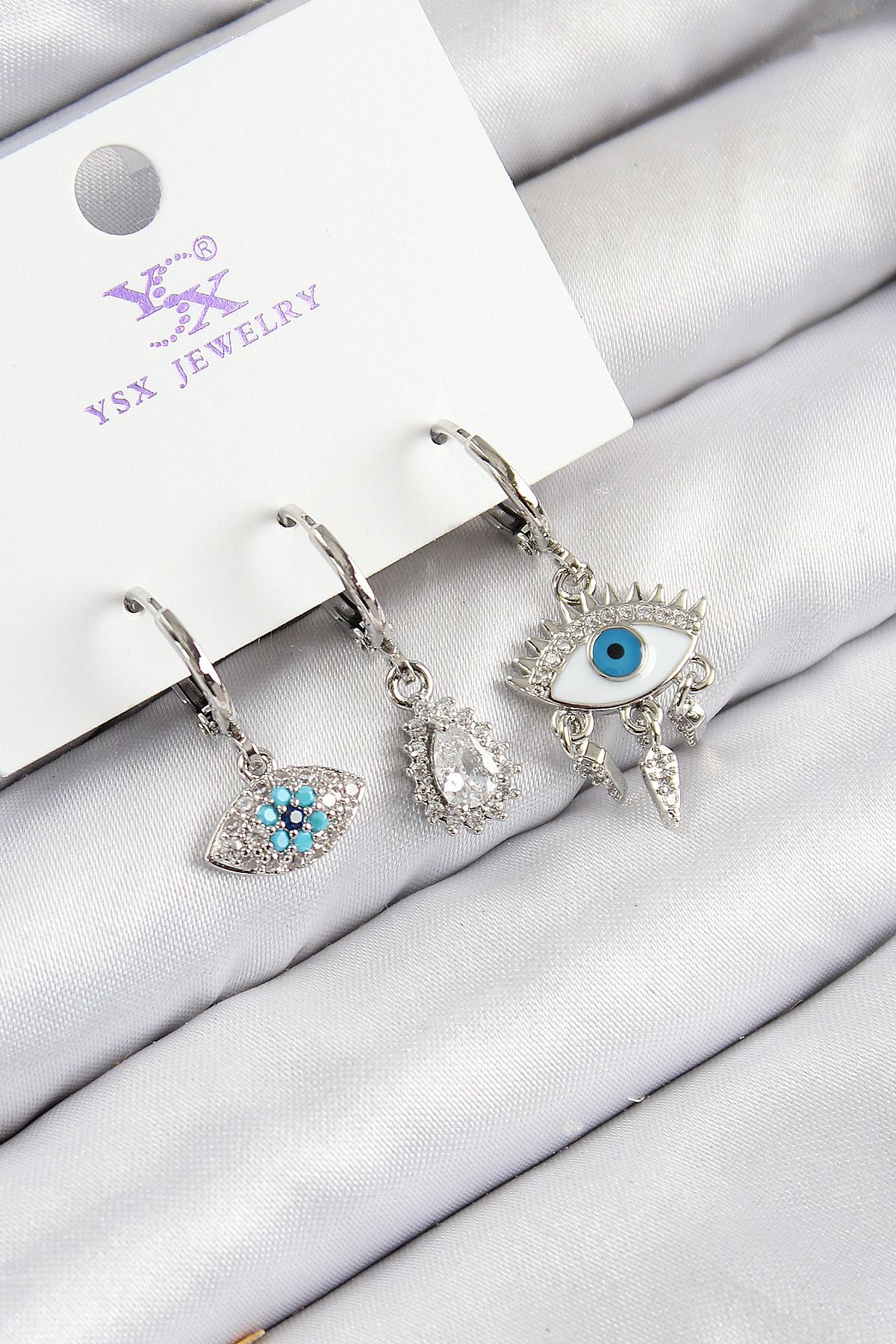 YRTCL Pirinç Zirkon Taşlı 3'lü Fatma'nın Gözü Model Gümüş Renk Kadın Küpe