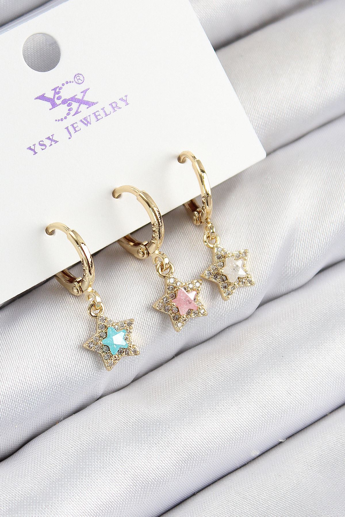 YRTCL Pirinç Zirkon Taşlı 3'lü Renkli Yıldız Model Gold Renk Kadın Küpe