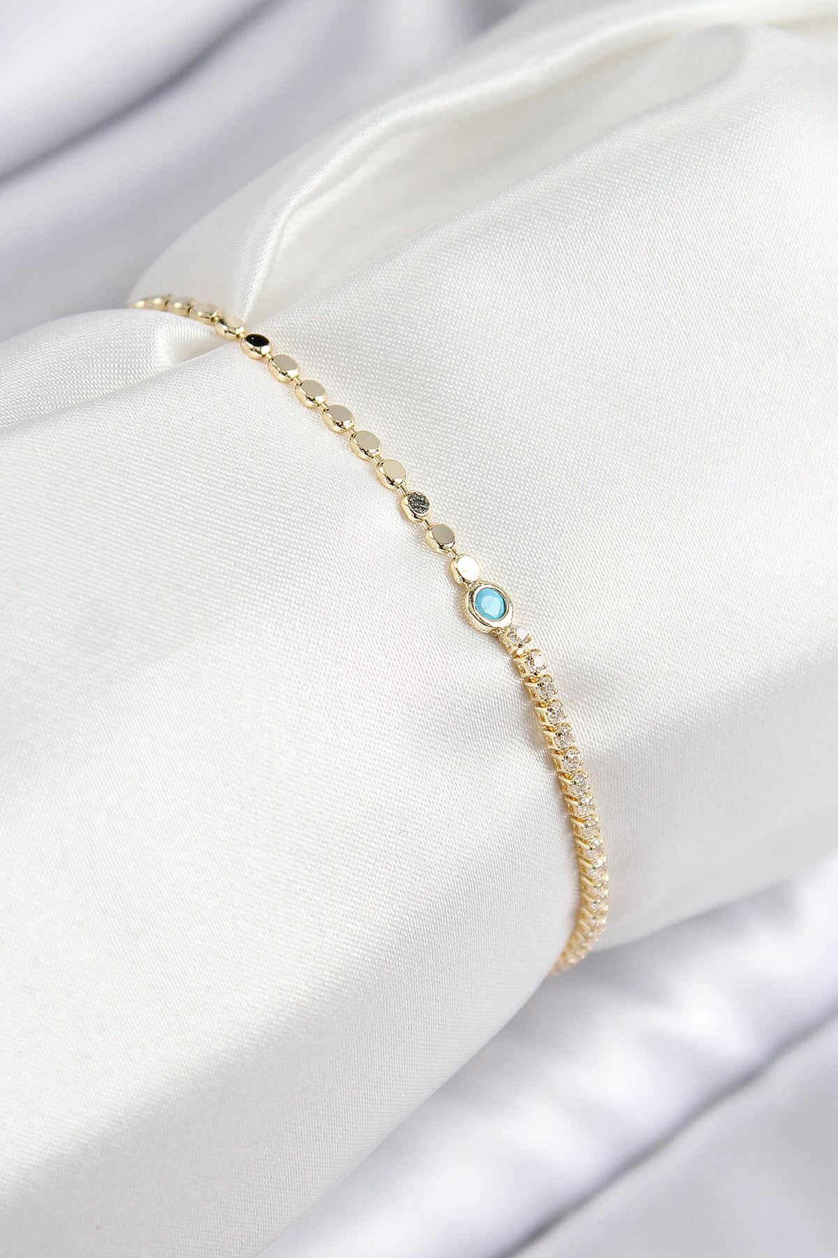 YRTCL Pirinç Zirkon Taşlı Boncuk Model Ezme Zincir Gold Renk Kadın Bileklik