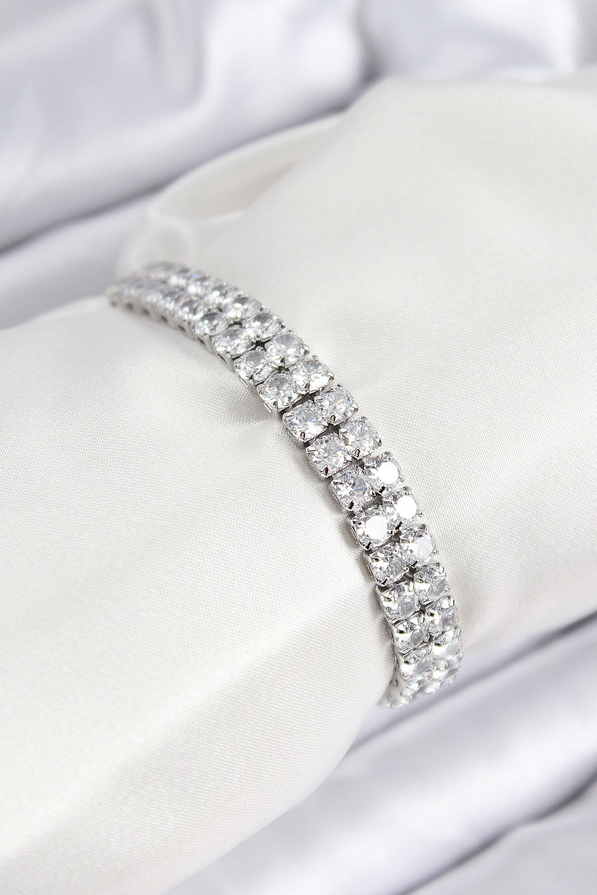 YRTCL Pirinç Zirkon Taşlı Çift Sıra Kare Model Gümüş Renk Asansörlü Kadın Bileklik