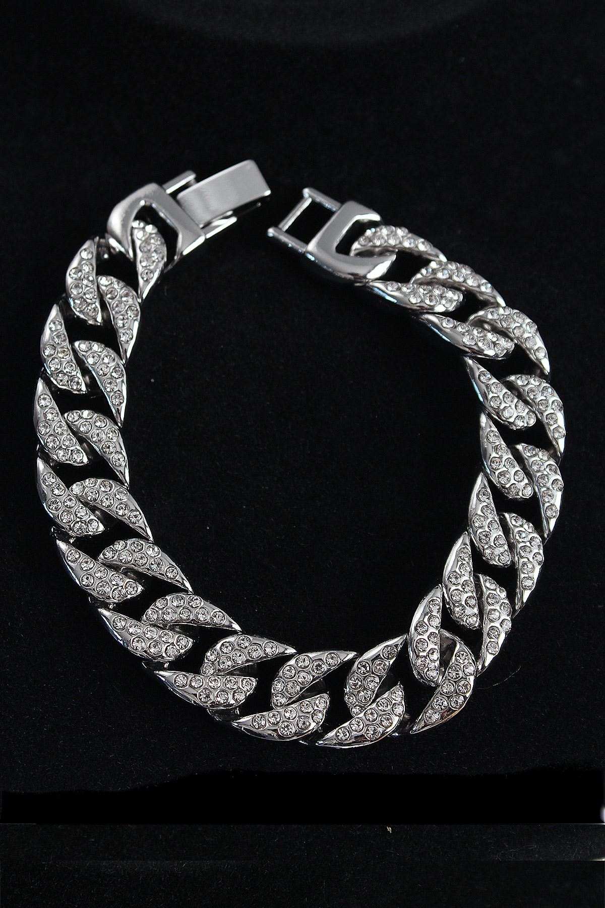 YRTCL Pirinç Zirkon Taşlı Cuba Gurmet Model Gümüş Renk Erkek Bileklik
