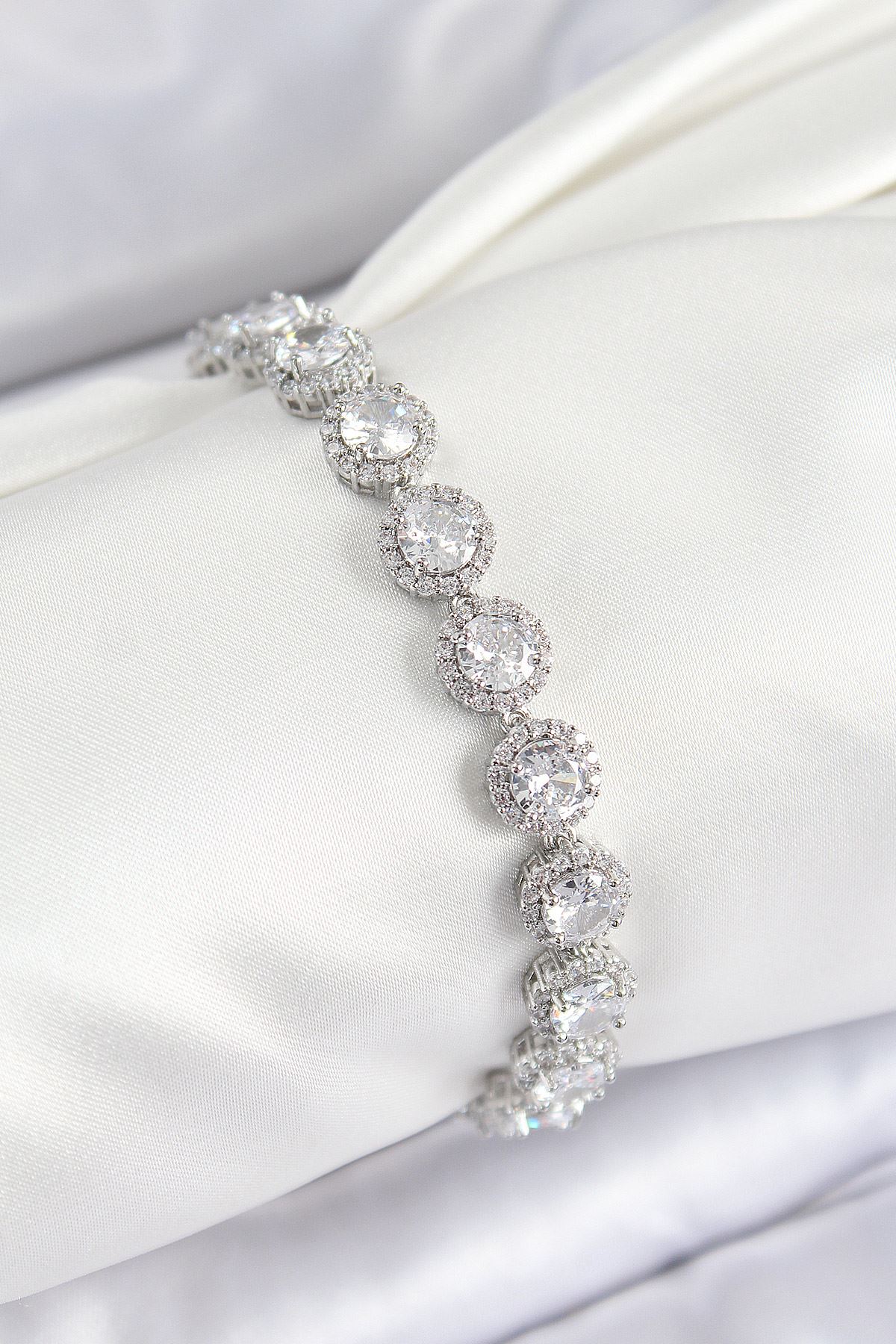 YRTCL Pirinç Zirkon Taşlı Daire Baget Model Gümüş Renk VIP Seri Kadın Bileklik
