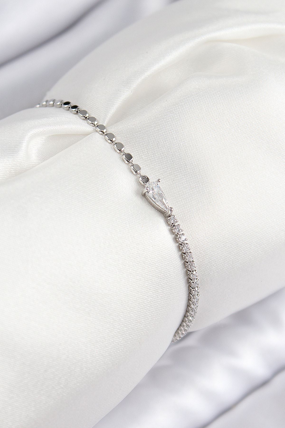 YRTCL Pirinç Zirkon Taşlı Damla Model Ezme Zincir Gümüş Renk Kadın Bileklik