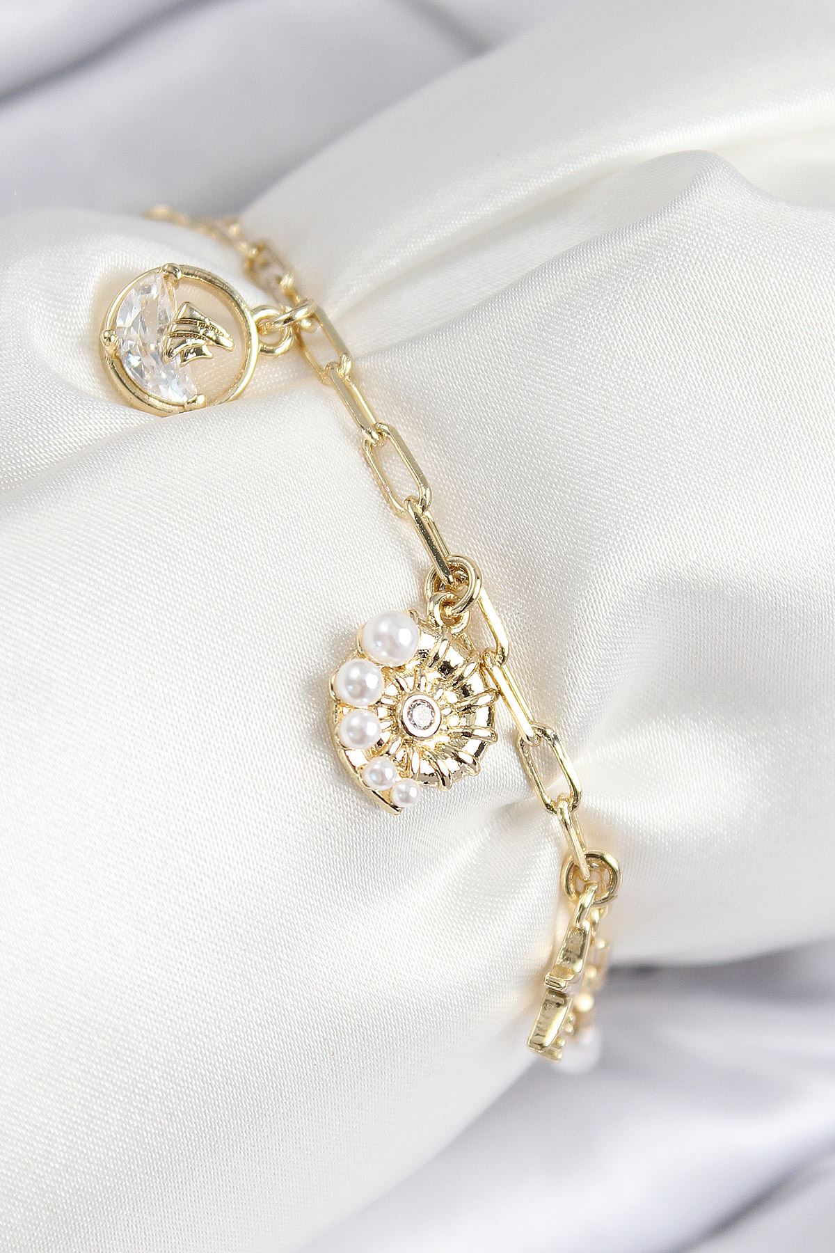 YRTCL Pirinç Zirkon Taşlı Deniz Kabuğu Model Gold Renk Kadın Bileklik