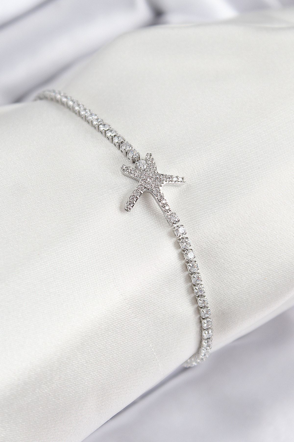 YRTCL Pirinç Zirkon Taşlı Deniz Yıldızı Model Gümüş Renk Kadın Bileklik