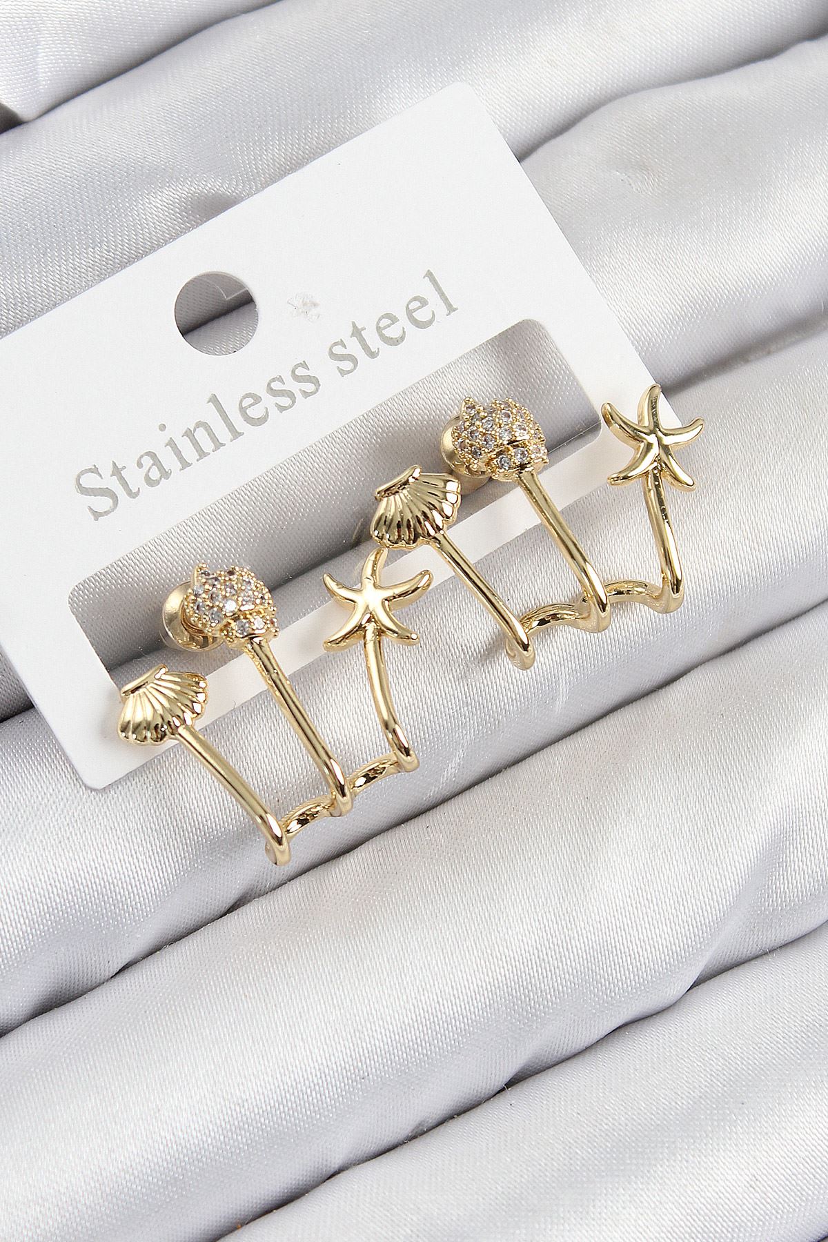 YRTCL Pirinç Zirkon Taşlı Deniz Yıldızı ve İstiridye Model Gold Renk Kadın Küpe