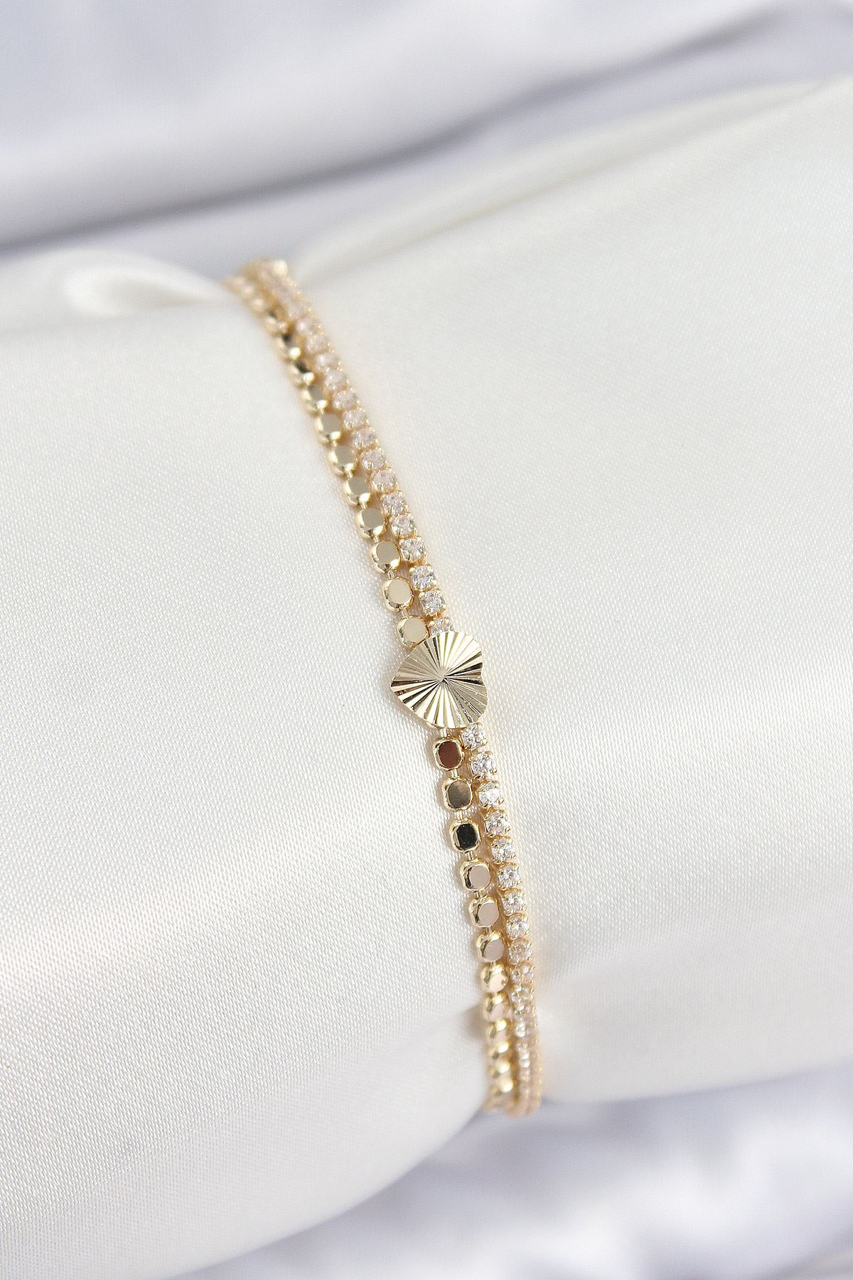 YRTCL Pirinç Zirkon Taşlı Kalp Model Gold Renk Kadın Bileklik