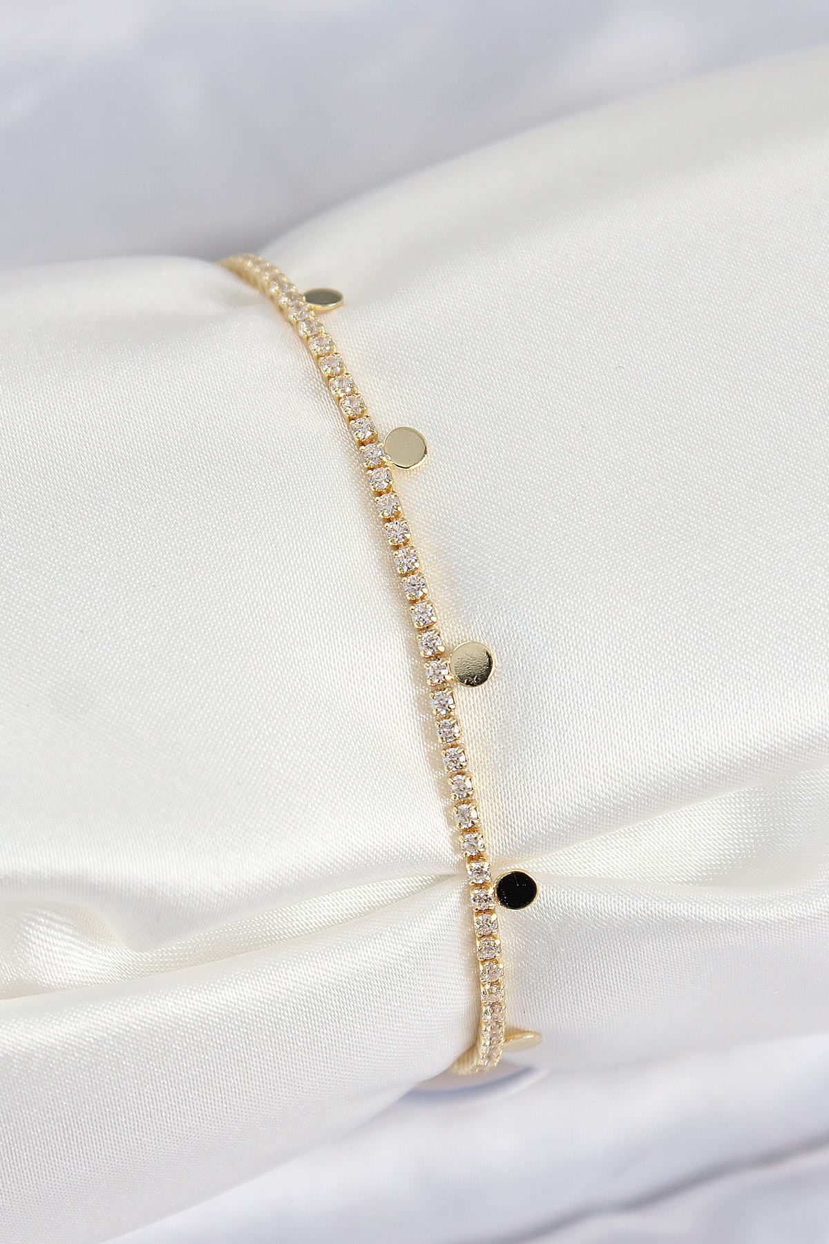 YRTCL Pirinç Zirkon Taşlı Ezme Zincirli Sıralı Model Gold Renk Kadın Bilekilk