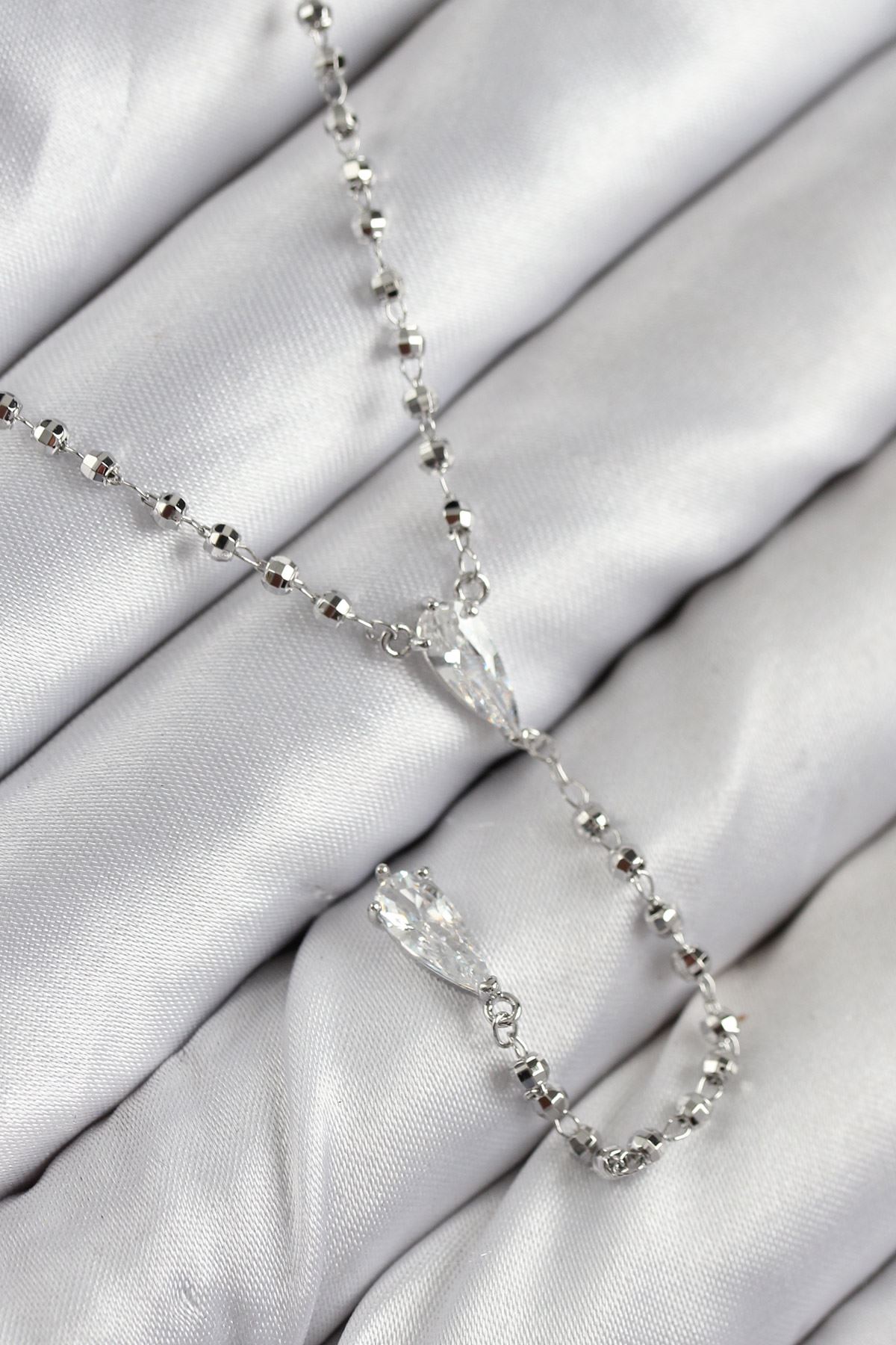 YRTCL Pirinç Zirkon Taşlı Gümüş Renk Kadın Y Kolye