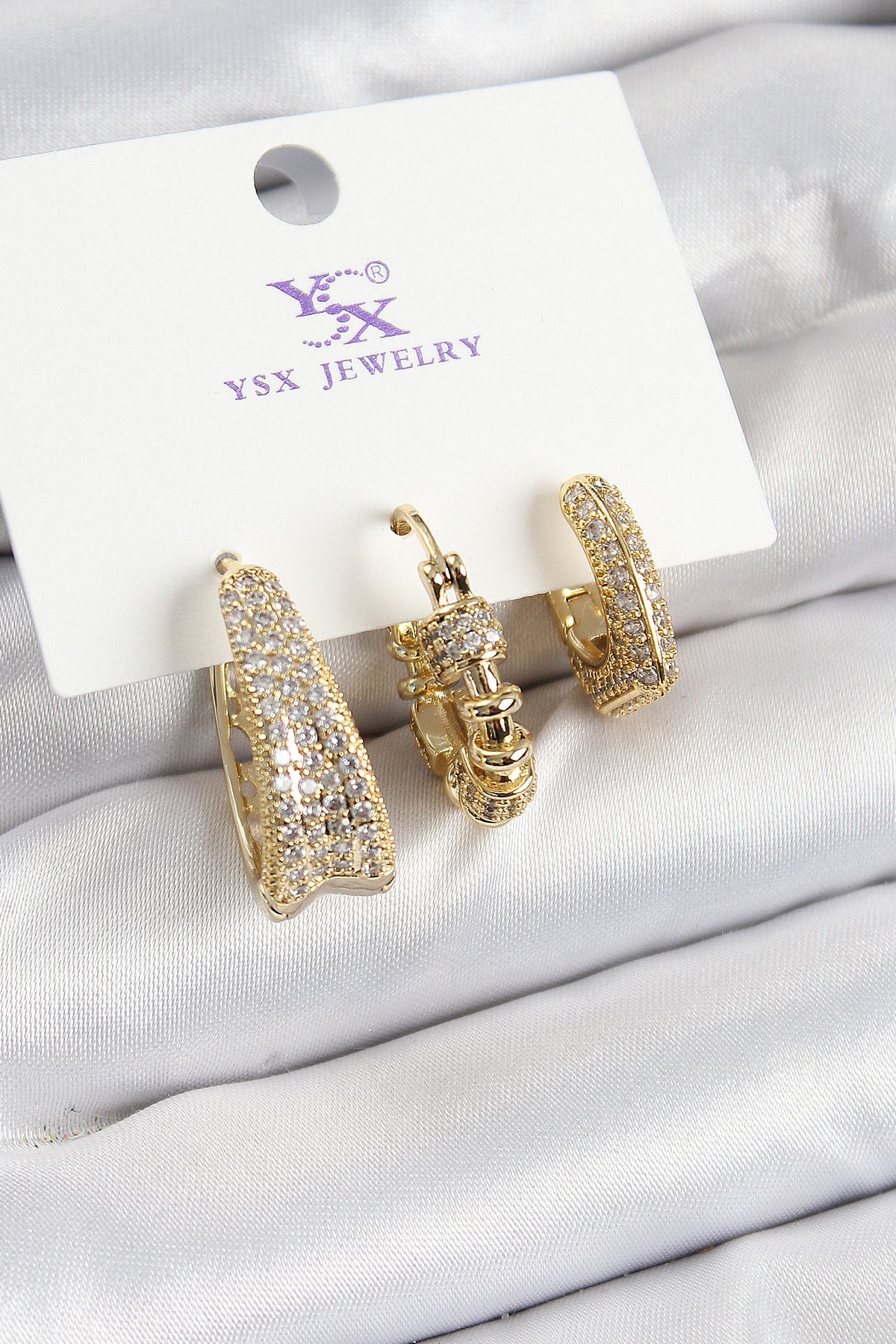 YRTCL Pirinç Zİrkon Taşlı Halka Model Gold Renk 3'lü Kadın Küpe
