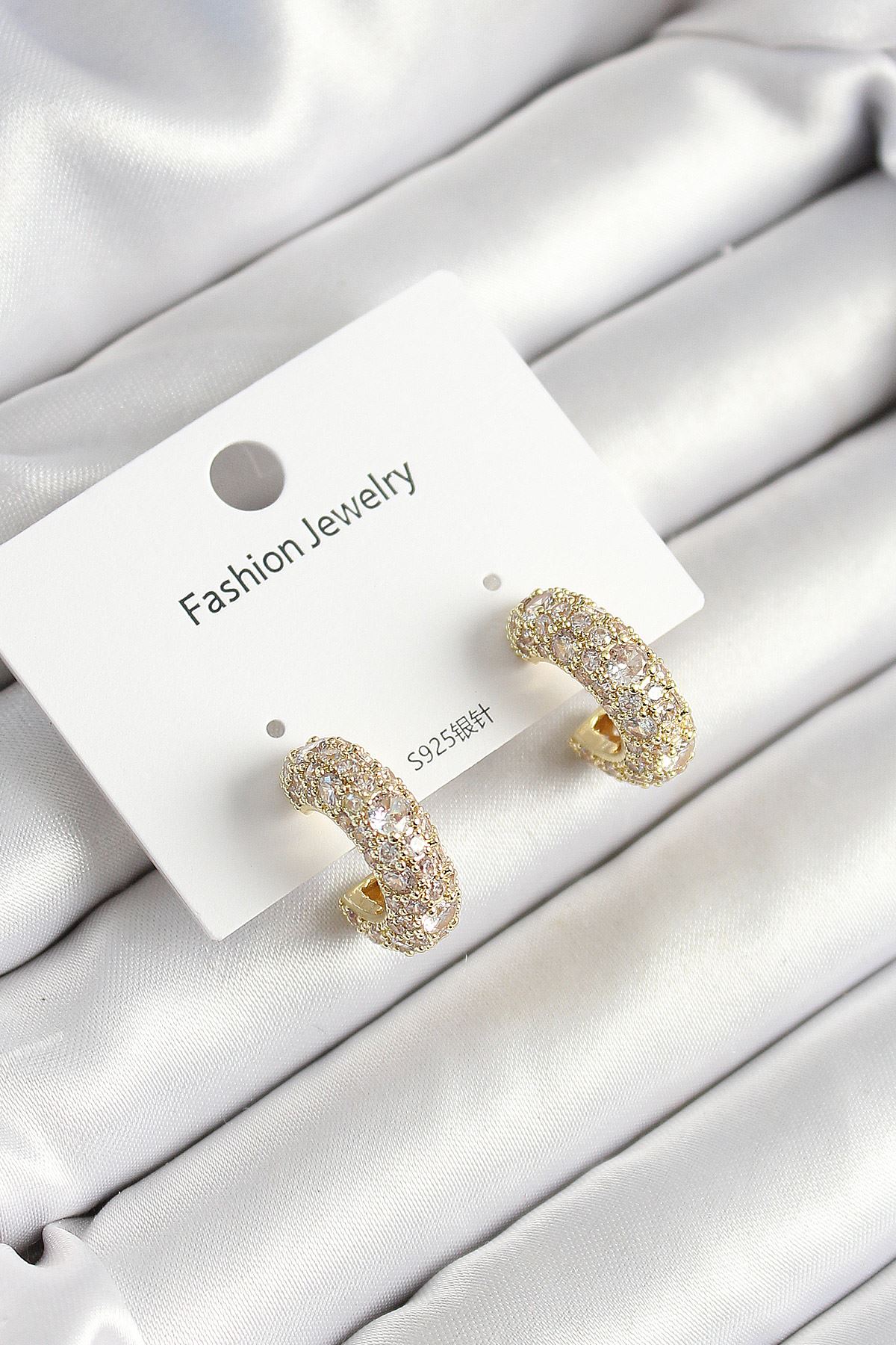 YRTCL Pirinç Zirkon Taşlı Halka Model Gold Renk Kadın Küpe