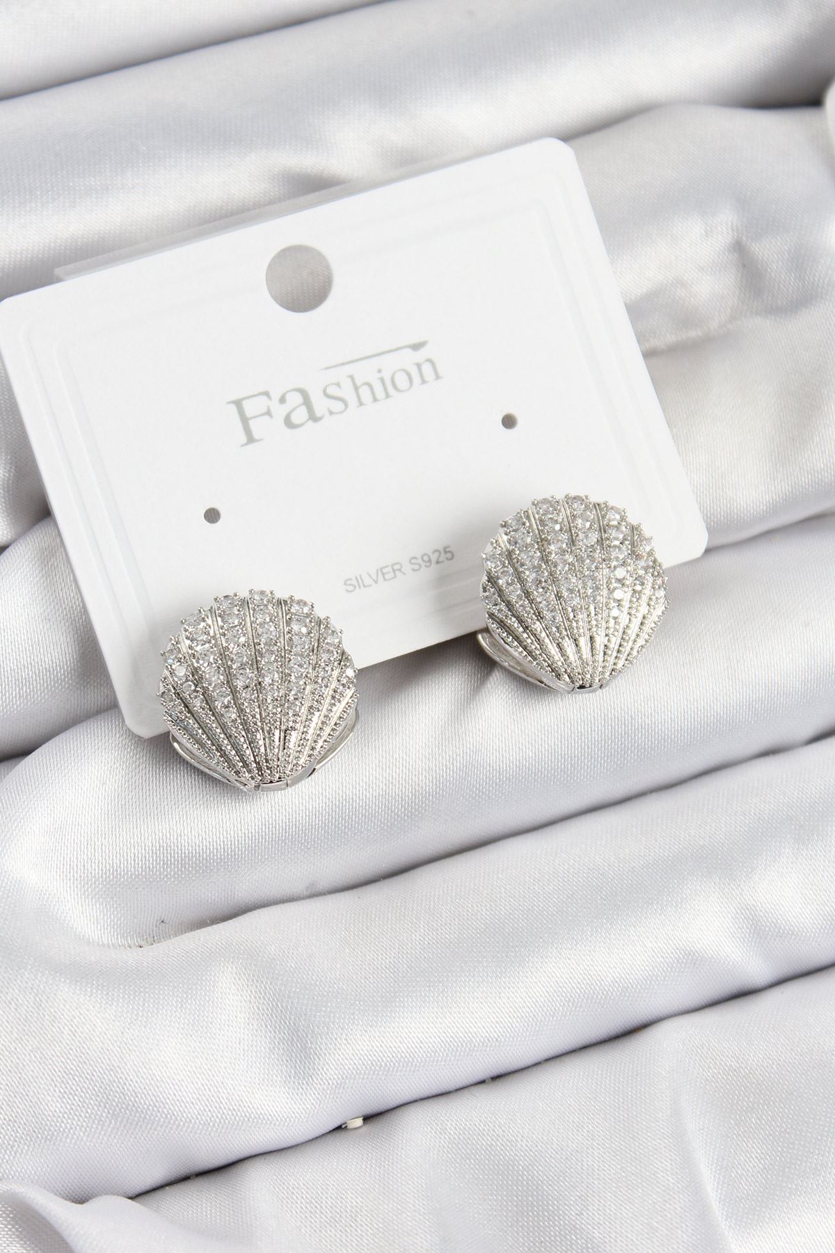 YRTCL Pirinç Zirkon Taşlı İstiridye Model Gümüş Renk 925 Ayar Gümüş Çivi Kadın Küpe