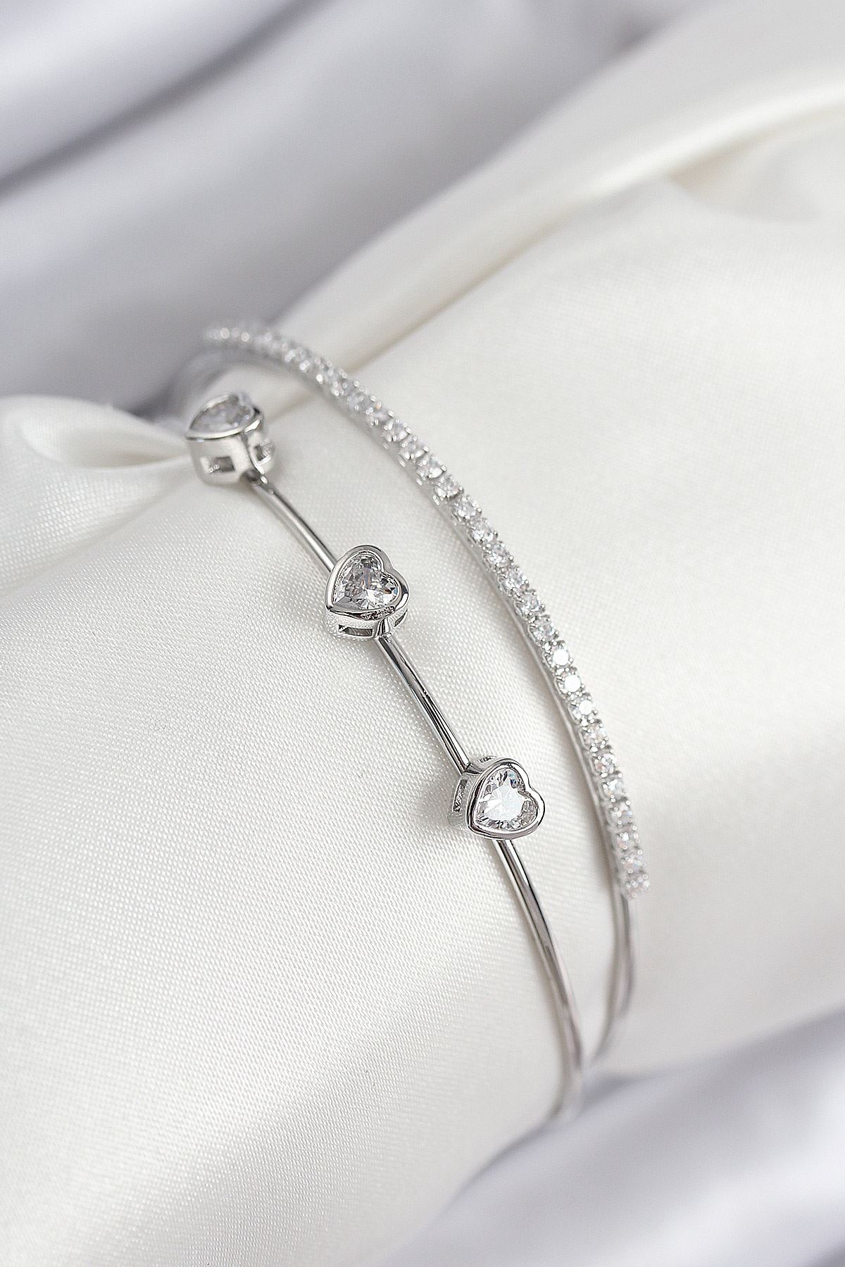YRTCL Pirinç Zirkon Taşlı Kalp Model Gümüş Renk Kadın Bileklik