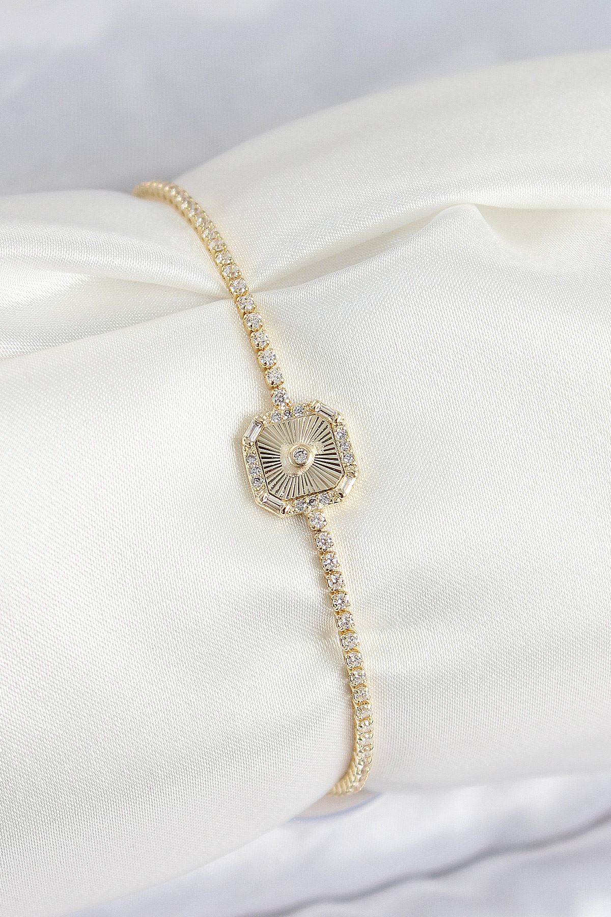 YRTCL Pirinç Zirkon Taşlı Kare Model Gold Renk Kadın Bilekilk