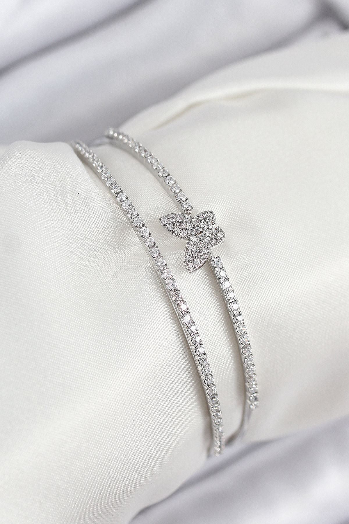 YRTCL Pirinç Zirkon Taşlı Kelebek Model Gümüş Renk Kadın Bileklik