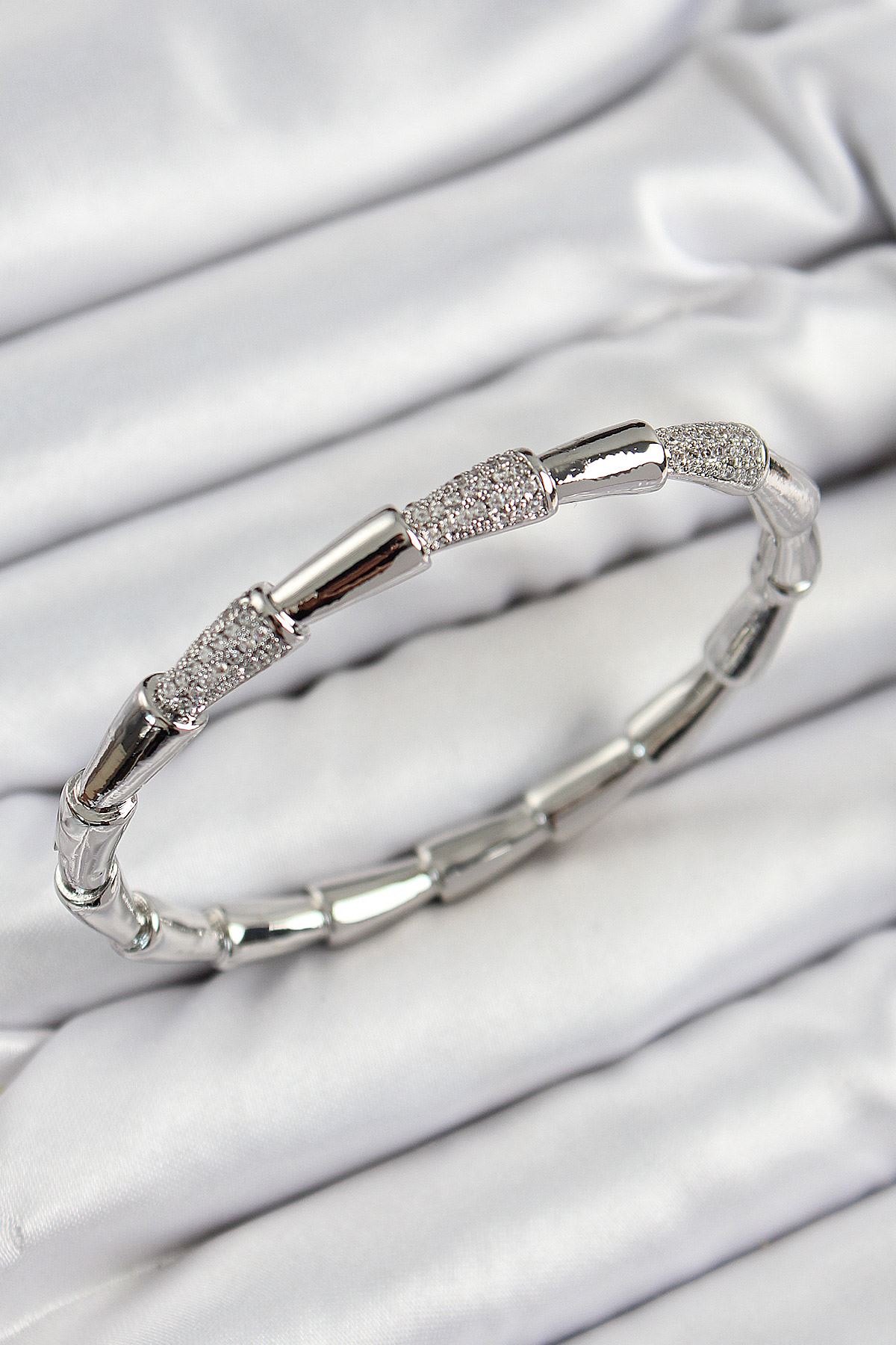 YRTCL Pirinç Zirkon Taşlı Kemik Model Gümüş Renk Vip Kadın Bileklik
