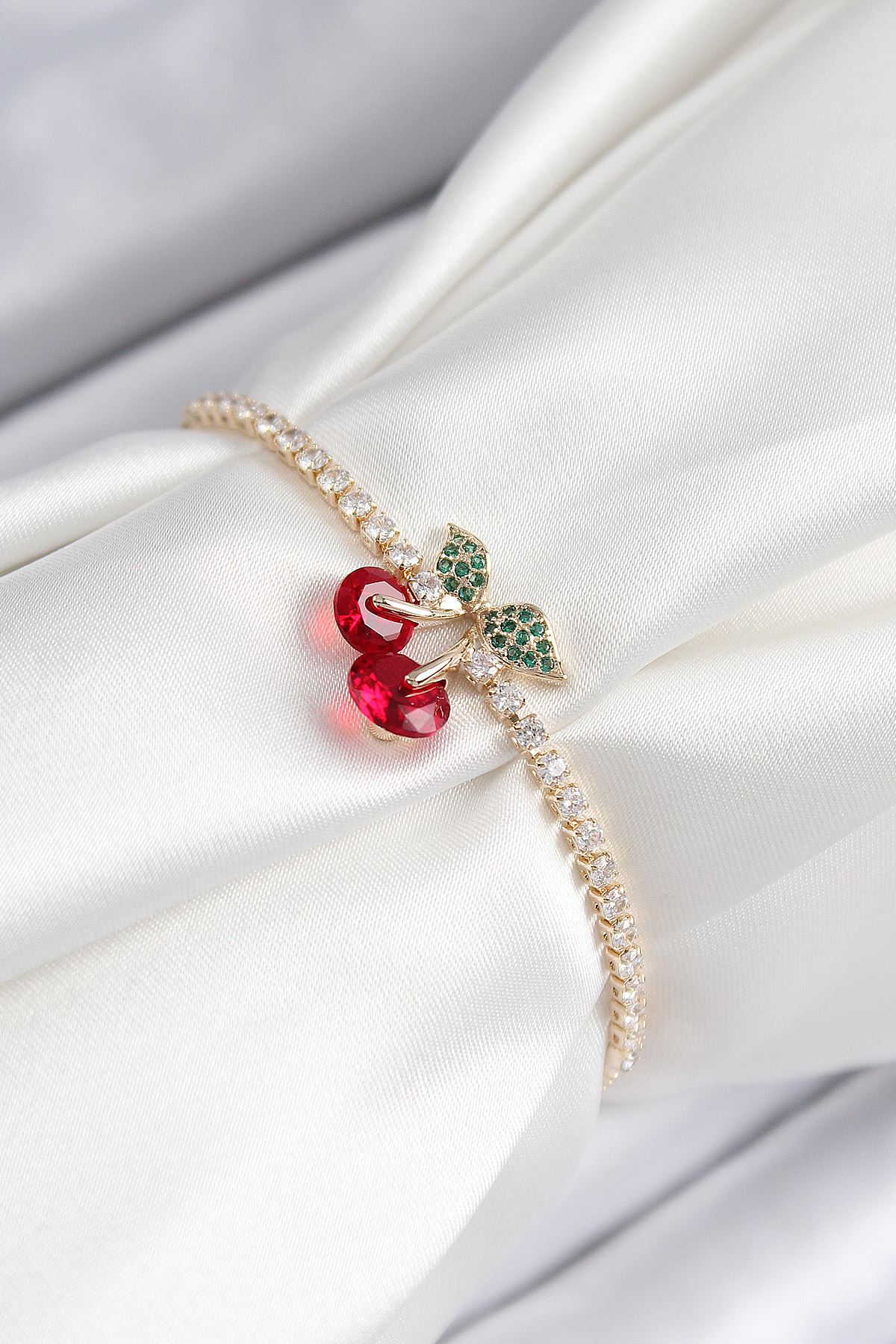YRTCL Pirinç Zirkon Taşlı Kiraz Model Gold Renk Asansörlü Kadın Bileklik