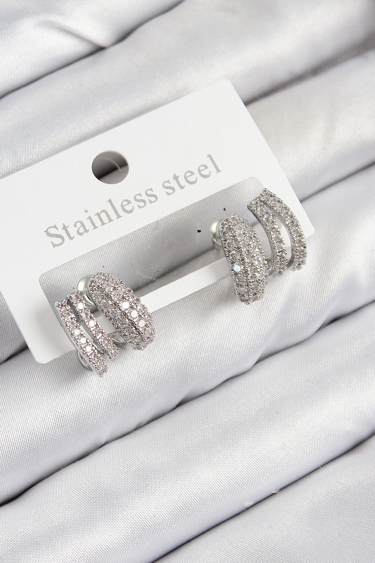 YRTCL Pirinç Zirkon Taşlı Kıvrımlı Model Gümüş Renk Kadın Küpe