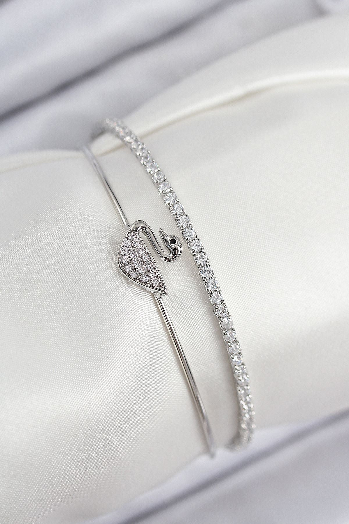 YRTCL Pirinç Zirkon Taşlı Kuğu Model Gümüş Renk Kadın Bileklik