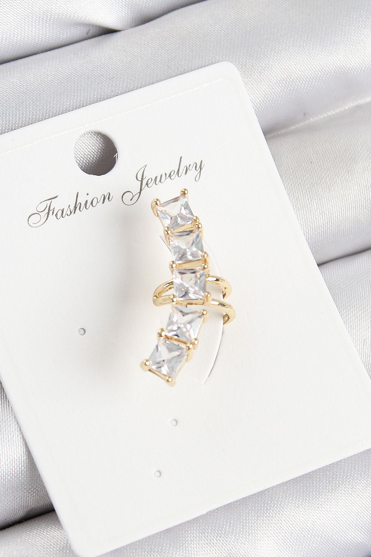 YRTCL Pirinç Zirkon Taşlı Model Gold Renk Sağ Kıkırdak Küpe