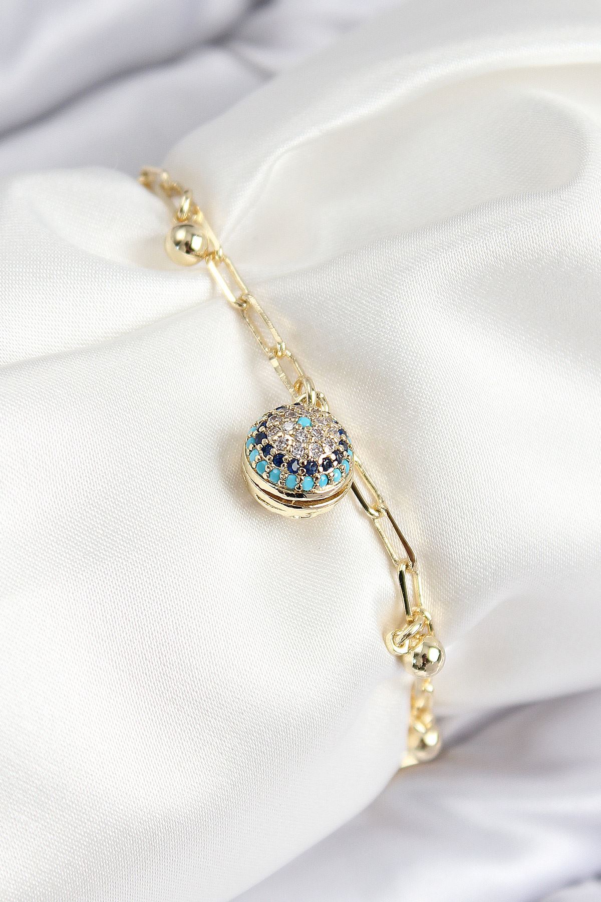 YRTCL Pirinç Zirkon Taşlı Nazar Boncuğu Model Gold Renk Kadın Bileklik
