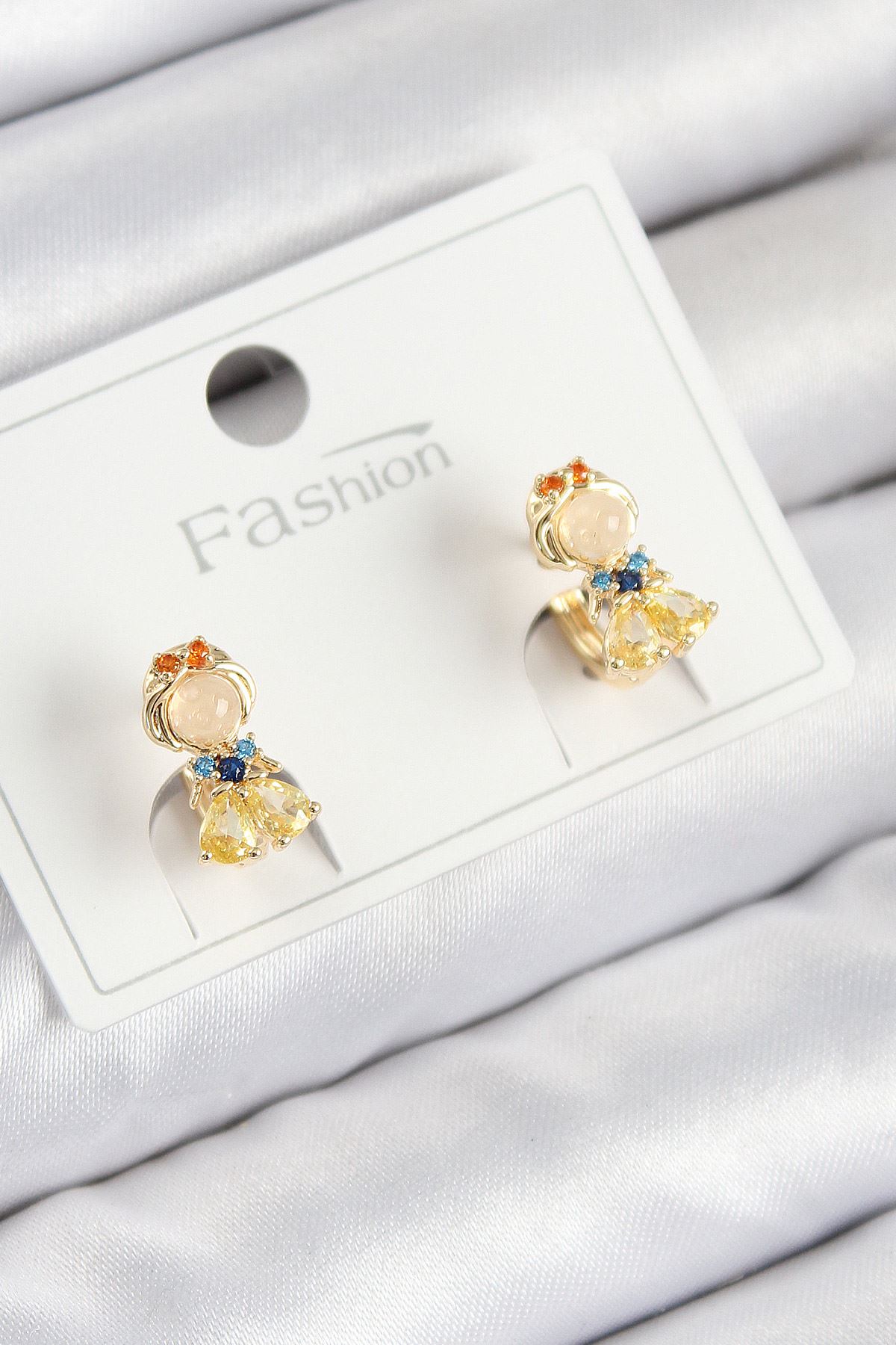 YRTCL Pirinç Zirkon Taşlı Pamuk Prenses Model Gold Renk Çocuk Küpe