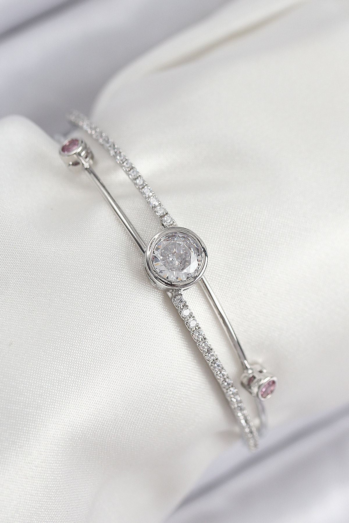 YRTCL Pirinç Zirkon Taşlı Pırlanta Model Gümüş Renk Kadın Bileklik