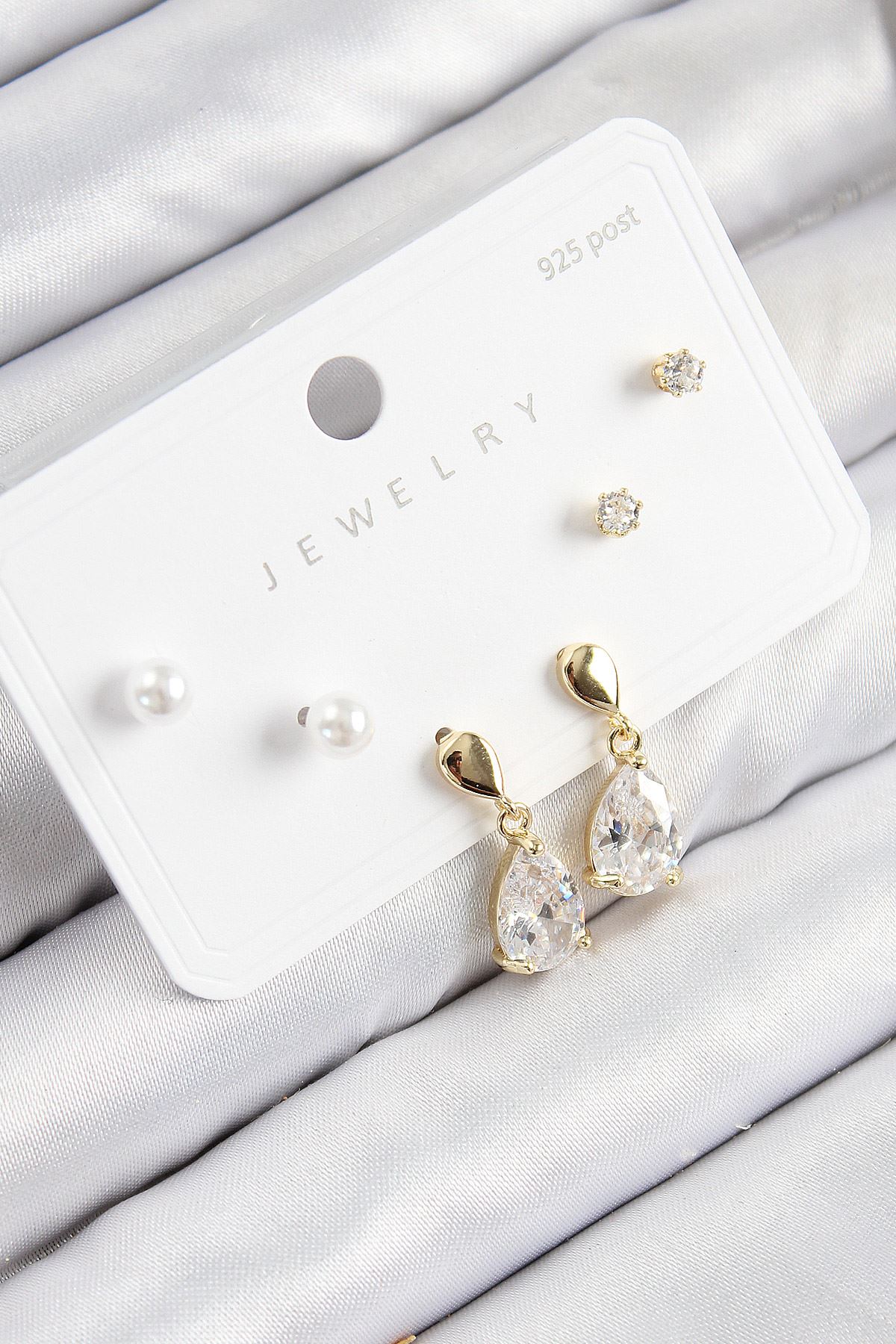 YRTCL Pirinç Zirkon Taşlı Sallantılı Damla Model Gold Renk 925 Ayar Gümüş Çivi Kadın Küpe Set