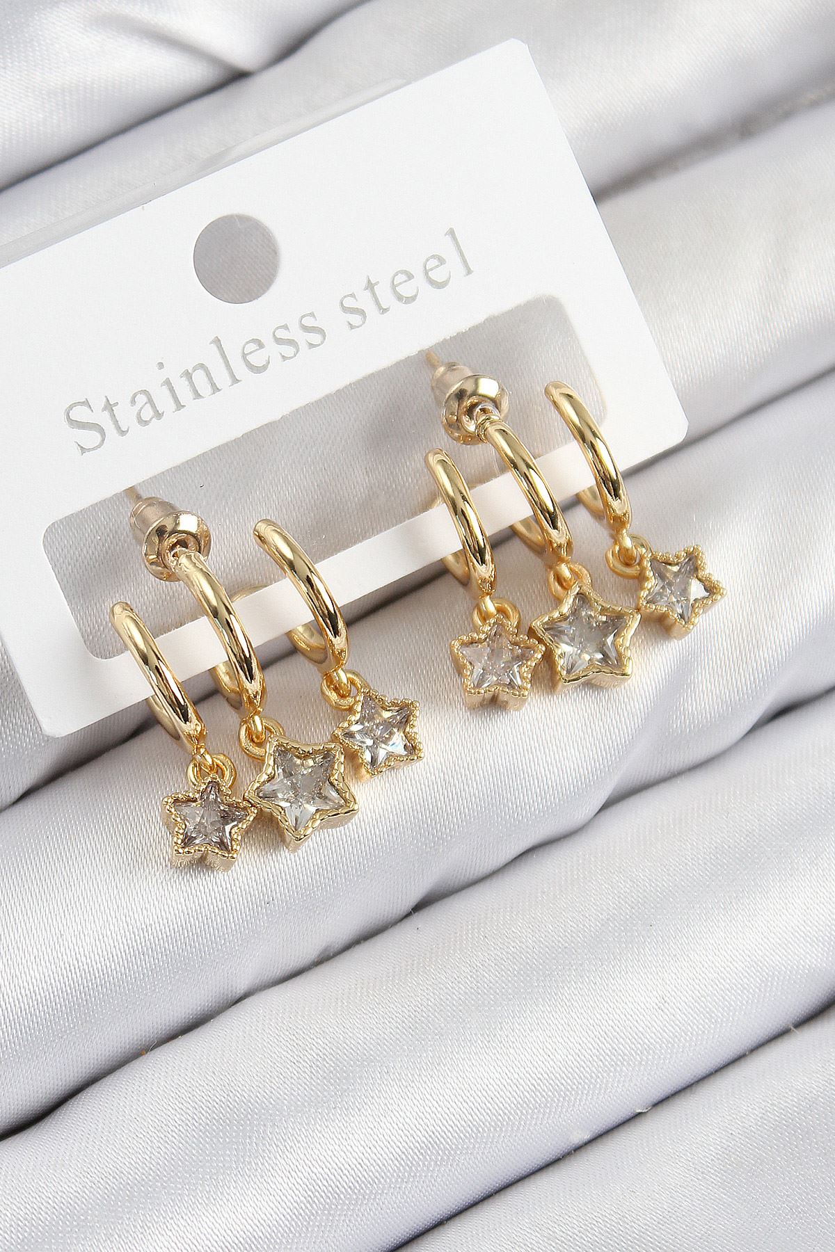 YRTCL Pirinç Zirkon Taşlı Sallantılı Yıldız Model Gold Renk Kadın Küpe