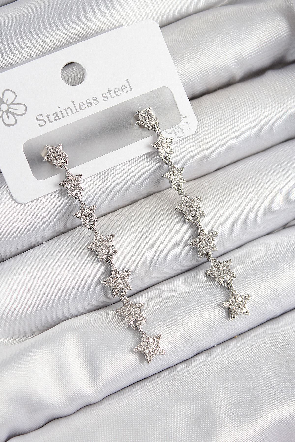 YRTCL Pirinç Zirkon Taşlı Sallantılı Yıldız Model Gümüş Renk Kadın Küpe