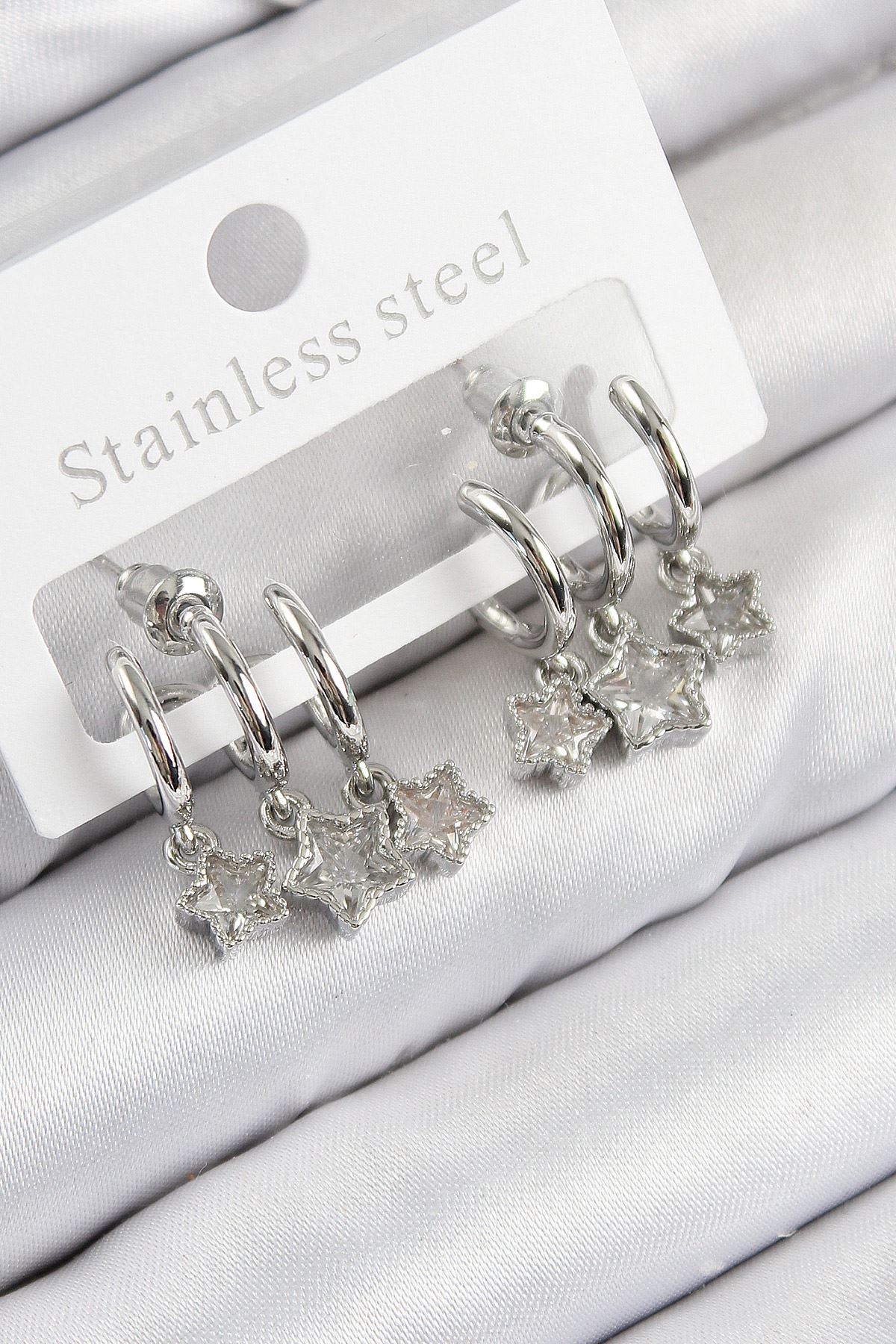 YRTCL Pirinç Zİrkon Taşlı Kutup Yıldızı Model Gold Renk 3'lü Çift Kadın Küpe