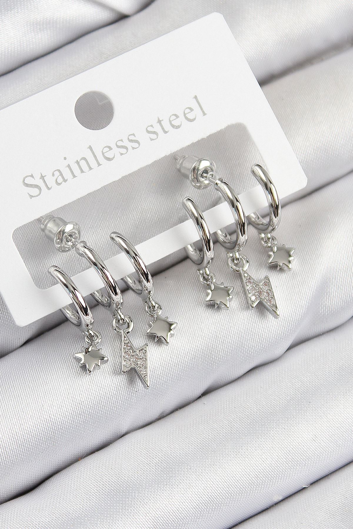 YRTCL Pirinç Zirkon Taşlı Şimşek Model Gümüş Renk Kadın Küpe