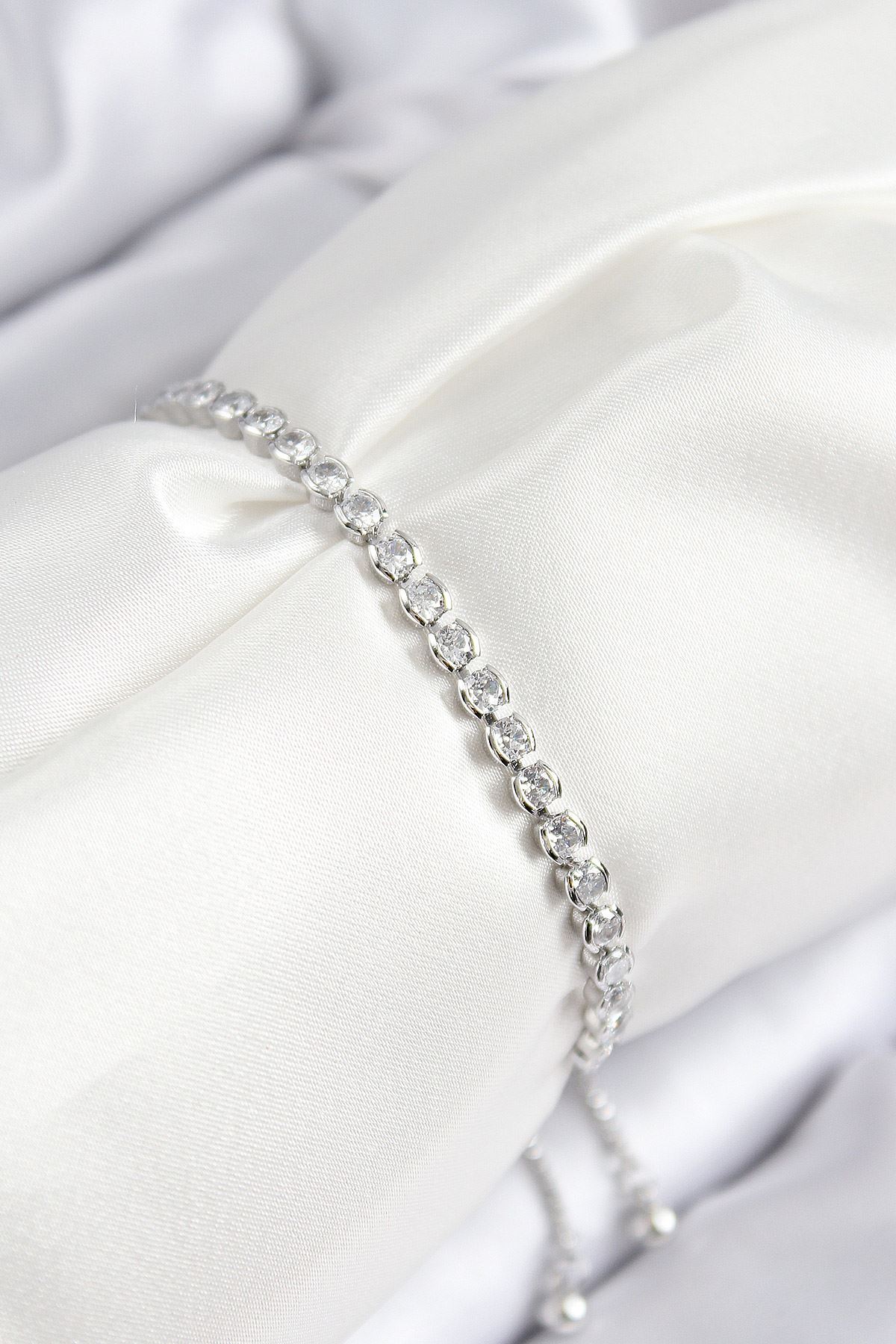 YRTCL Pirinç Zirkon Taşlı Sıralı Model Gümüş Renk Asansörlü Kadın Bileklik