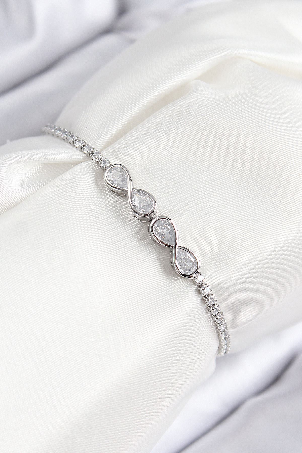 YRTCL Pirinç Zirkon Taşlı Sonsuzluk Model Gümüş Renk Asansörlü Kadın Bileklik