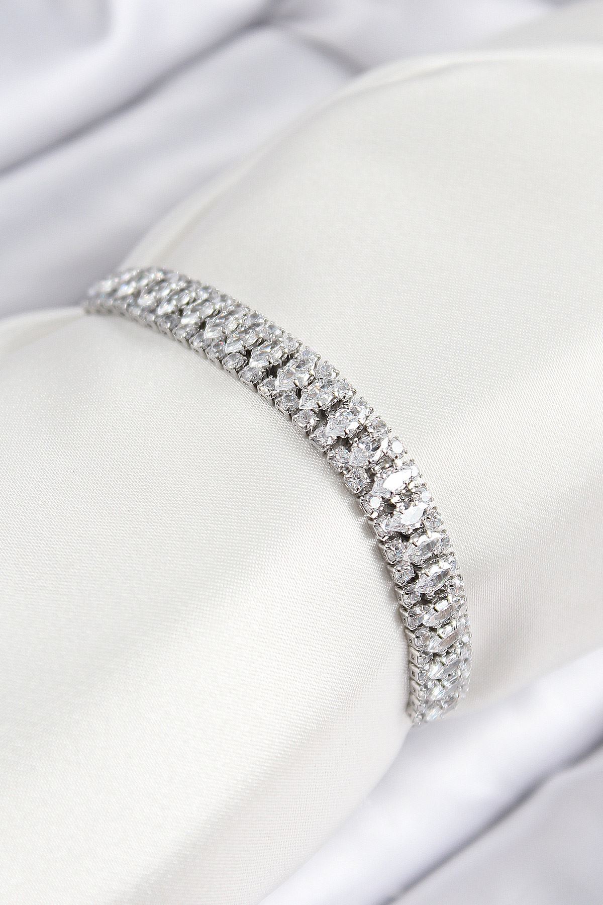 YRTCL Pirinç Zirkon Taşlı Tennıs Model Gümüş Renk Asansörlü Kadın Bileklik