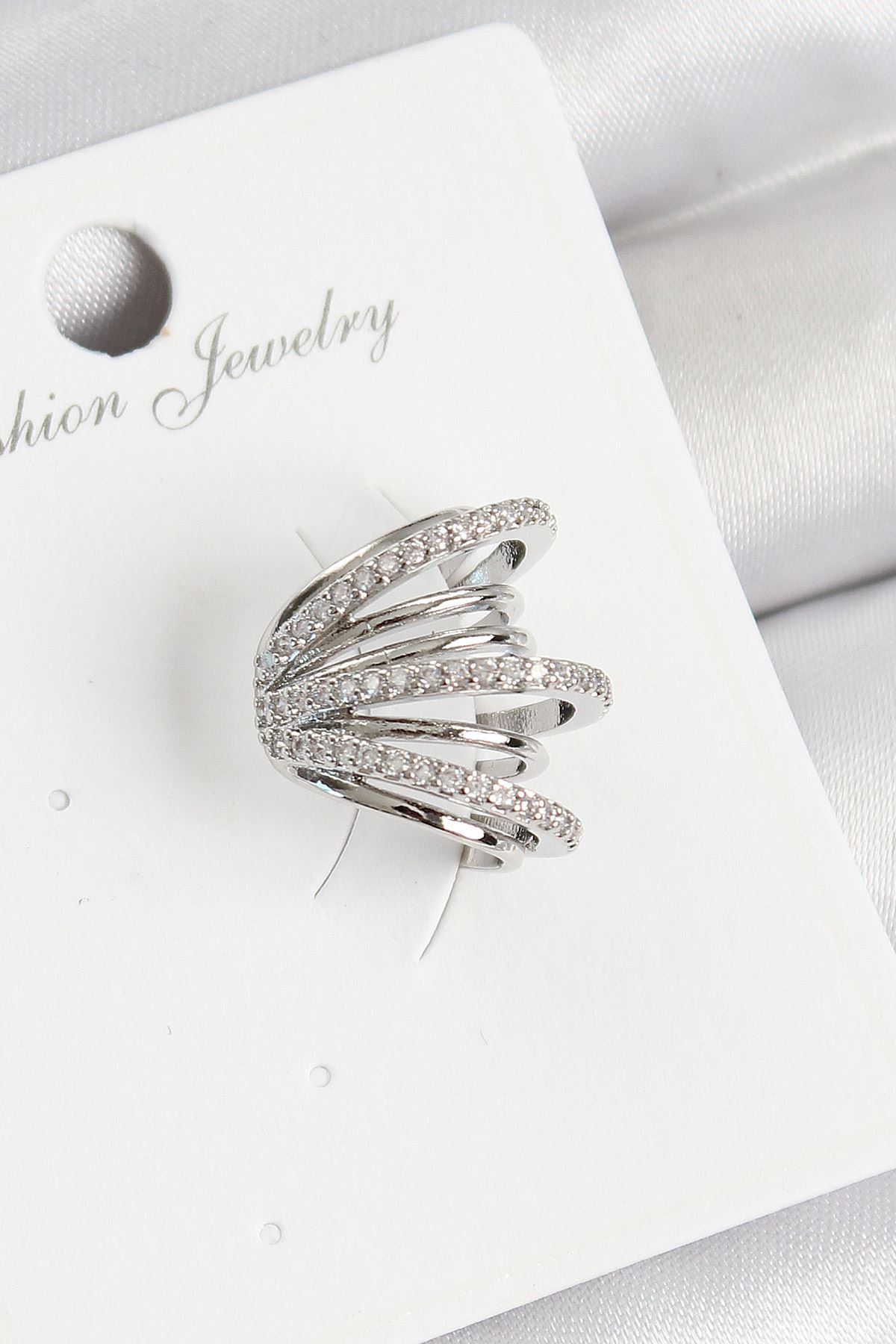 YRTCL Pirinç Zirkon Taşlı Yay Model Gümüş Renk Sağ Kıkırdak Küpe