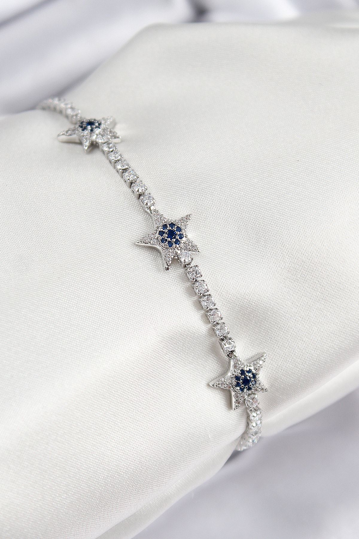 YRTCL Pirinç Zirkon Taşlı Yıldız Model Gümüş Renk Kadın Bileklik