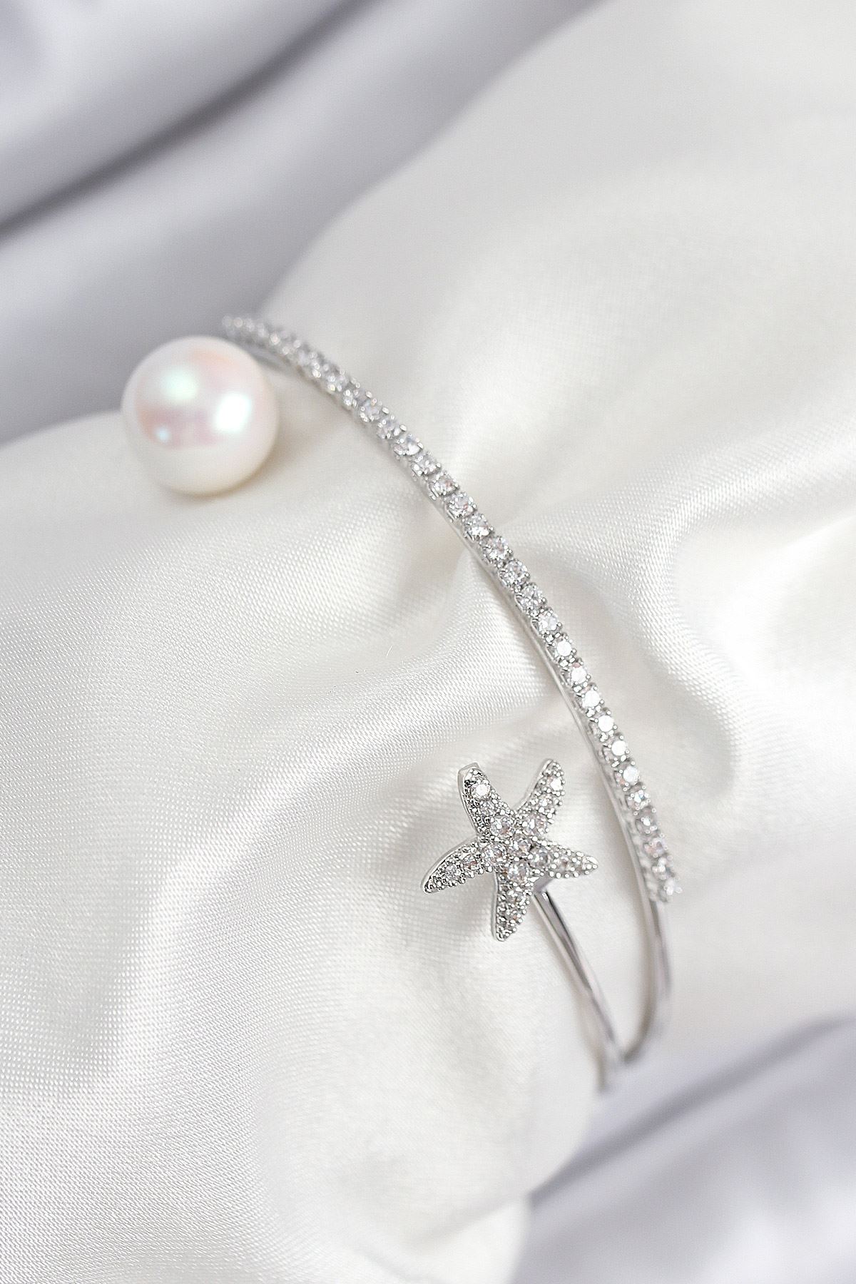 YRTCL Pirinç Zirkon Taşlı Yıldız Ve İnci Model Gümüş Renk Kadın Bileklik