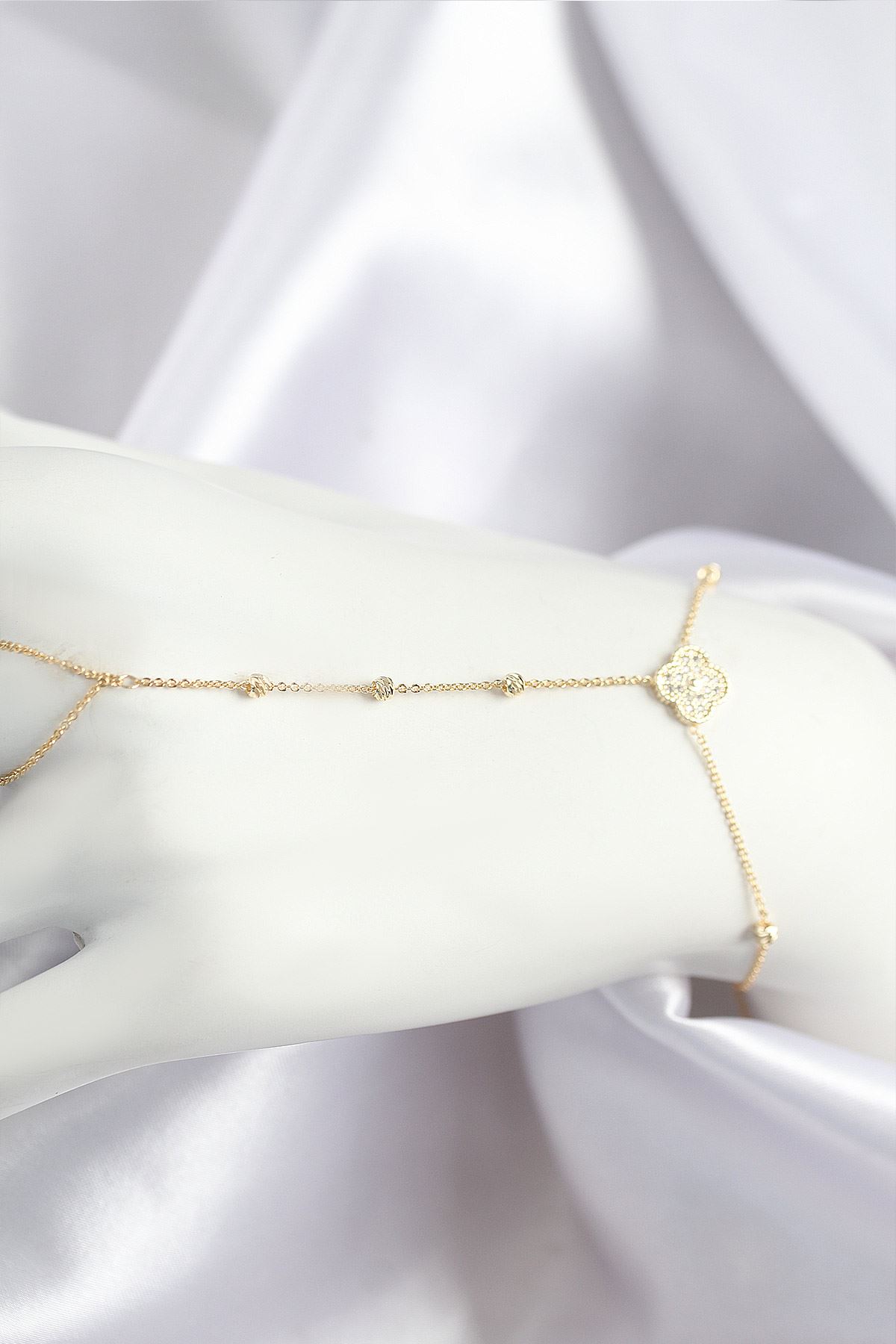 YRTCL Pirinç Gümüş Renk Zirkon Taşlı Yonca Model Kadın Bileklik