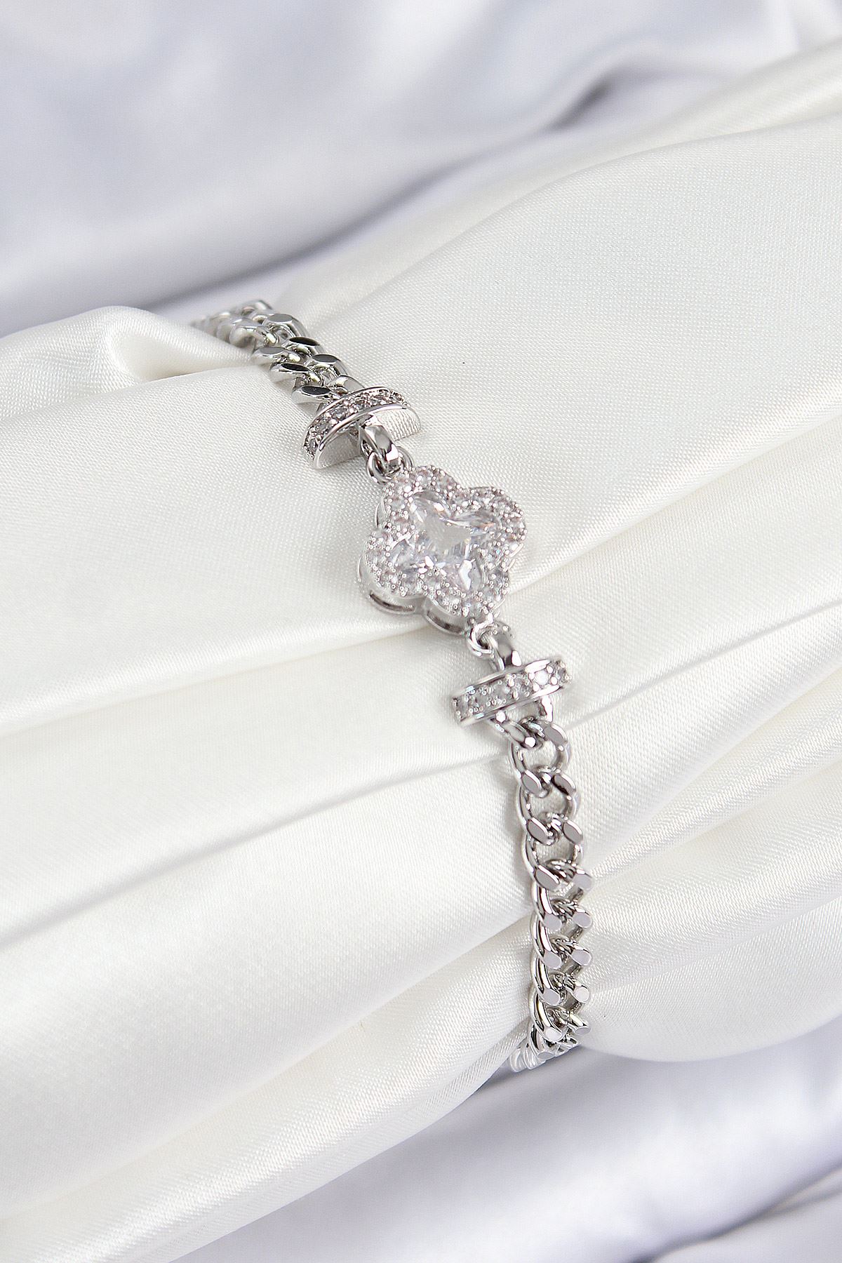 YRTCL Pirinç Zirkon Taşlı Yonca Model Gümüş Renk Kadın Bileklik