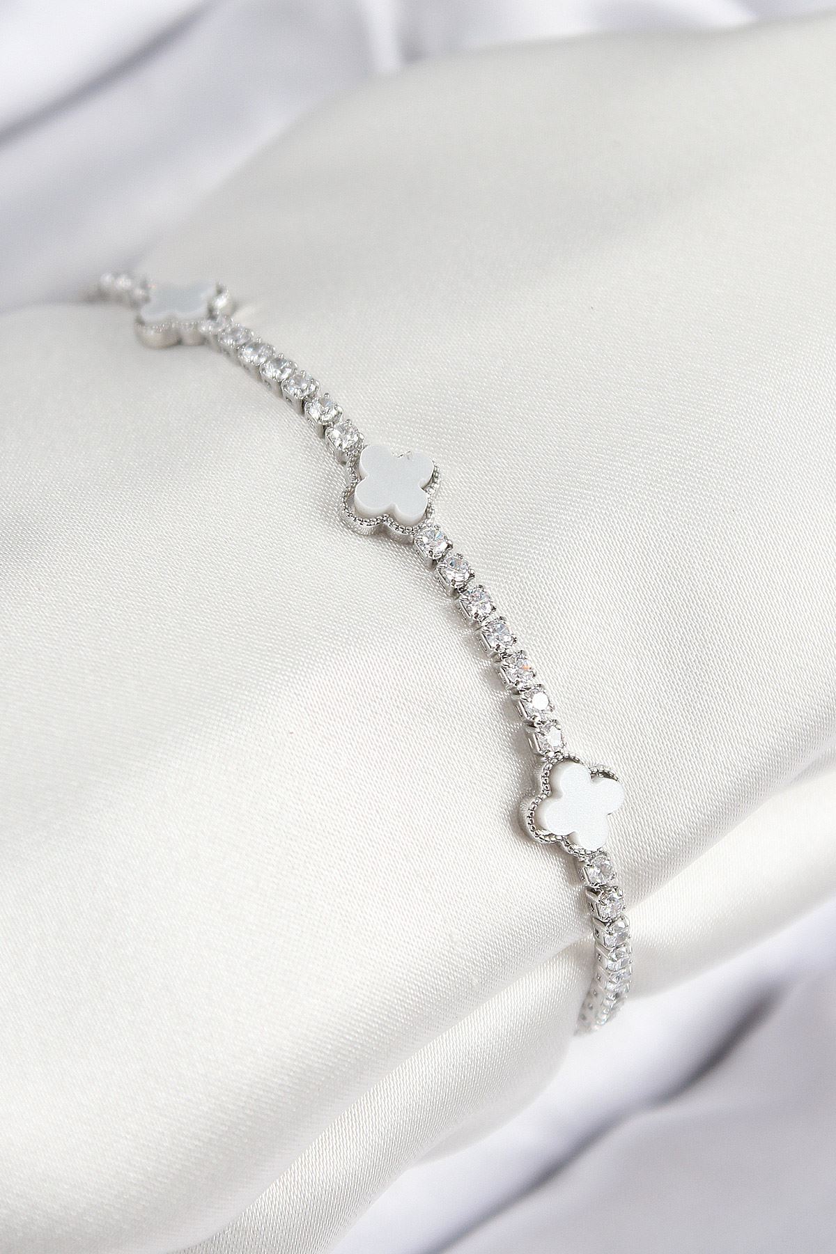 YRTCL Pirinç Zirkon Taşlı Yonca Model Gümüş Renk Kadın Bileklik