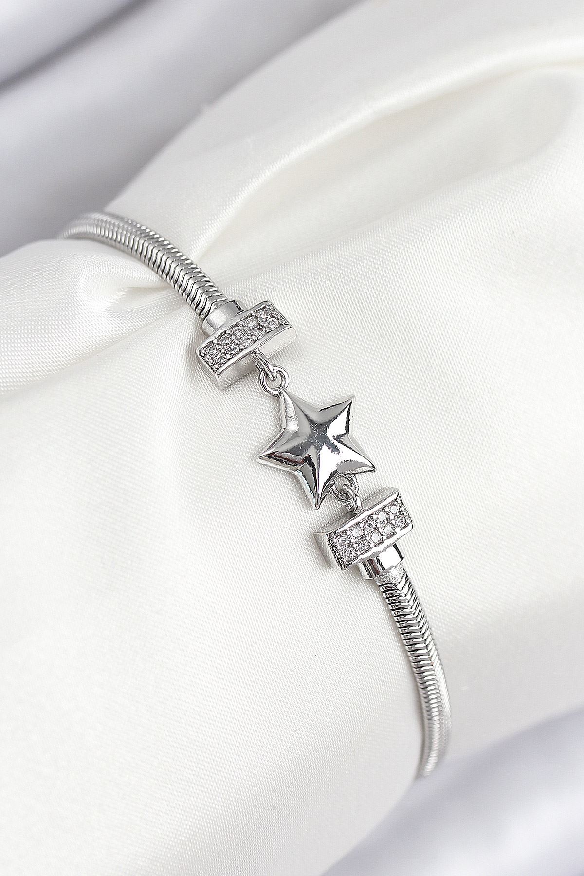 YRTCL Pirinç Zirkon Taşlı Yonca Model Gümüş Renk Kadın Bileklik