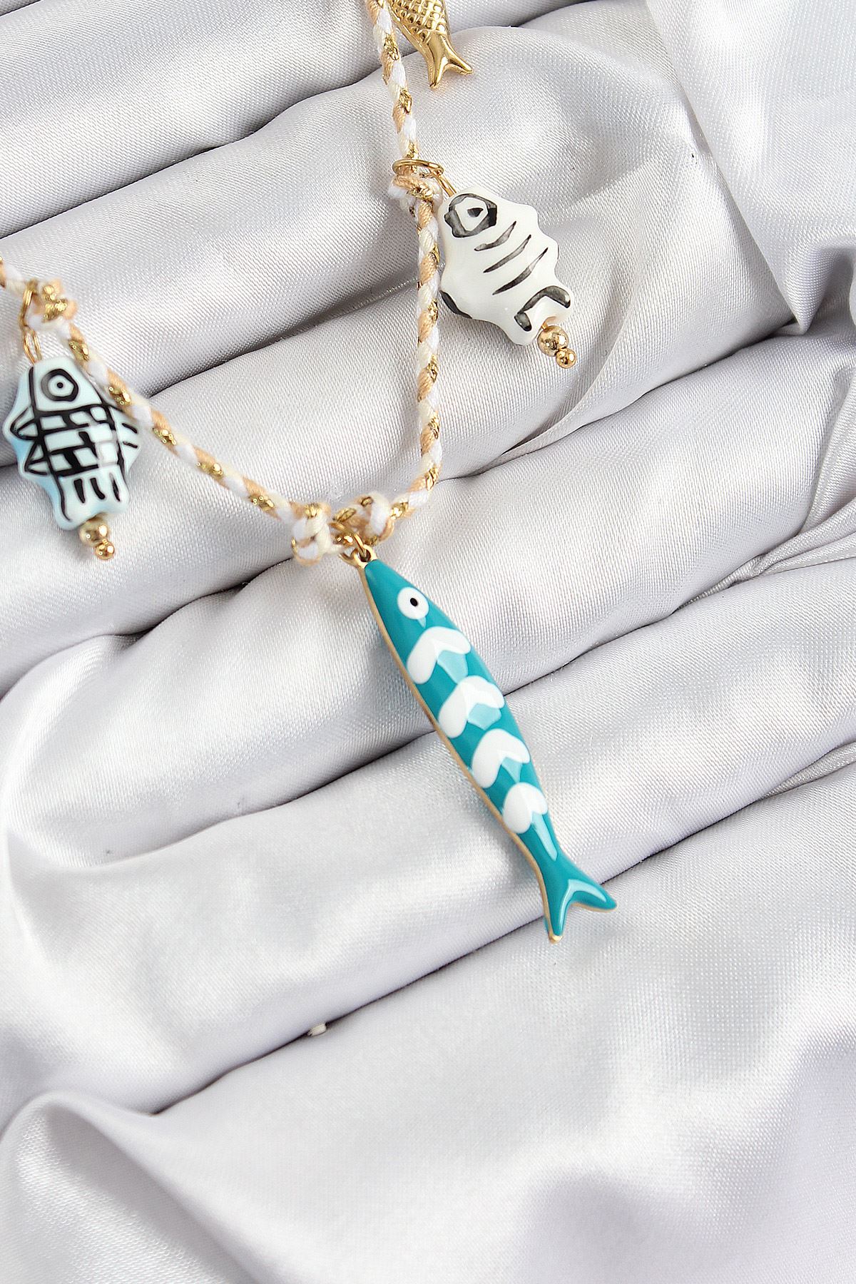YRTCL Seramik Motifli Balık Figürlü Model Krem İp Kadın Kolye