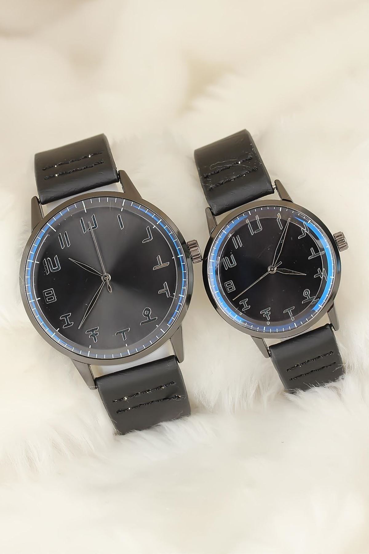YRTCL Siyah Renk Deri Kordonlu İstanbul Tasarımlı Sevgili Saatleri