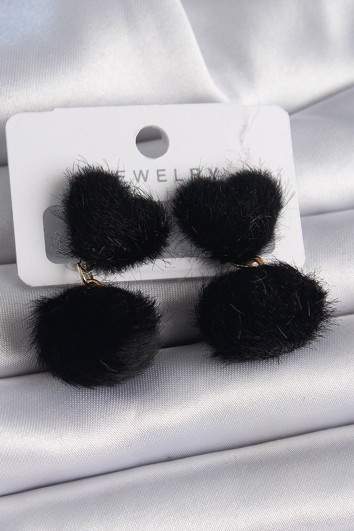 YRTCL Siyah Tüylü Ponpon Model Kadın Küpe