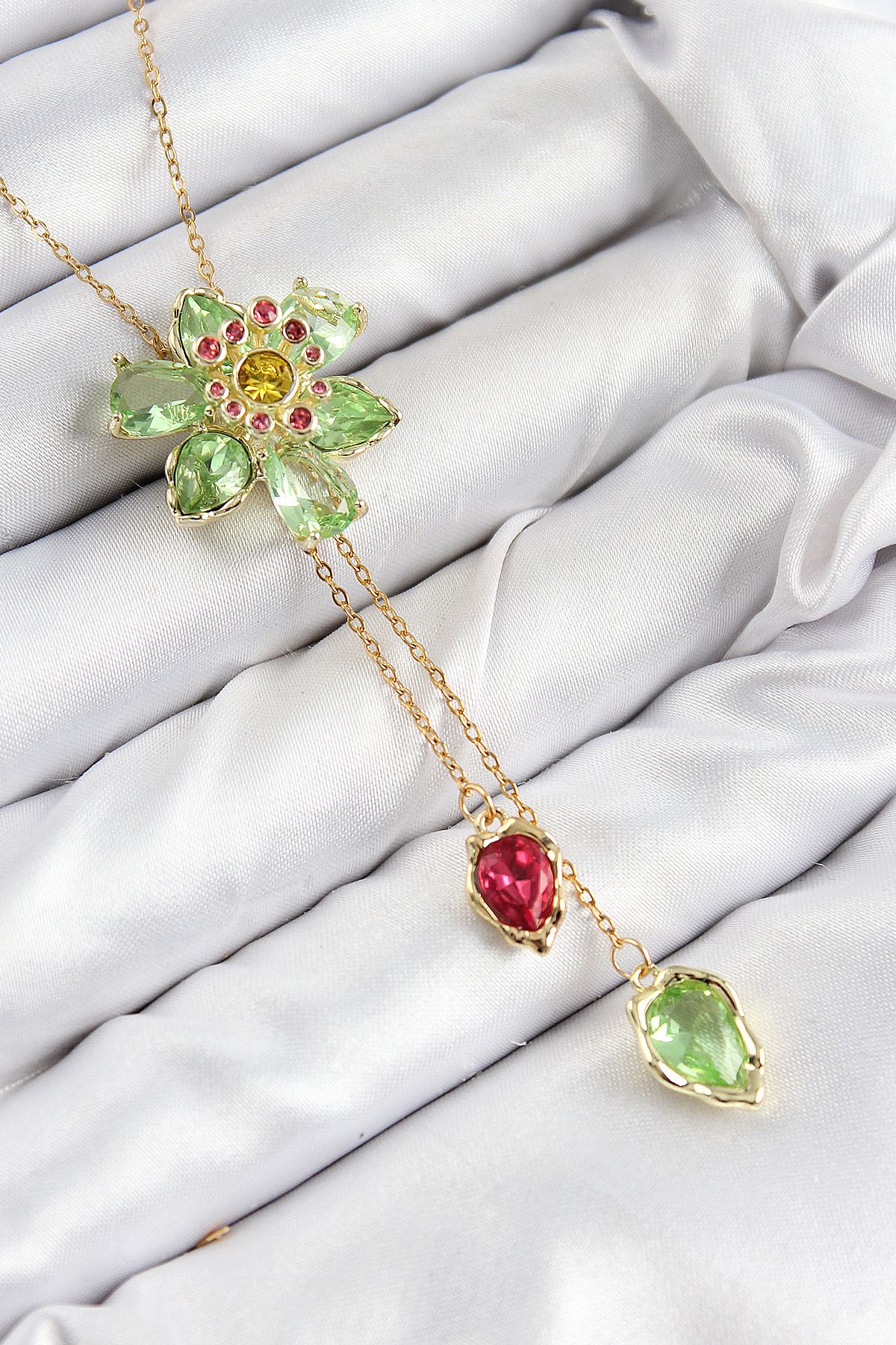 YRTCL VIP Pirinç Zirkon Taşlı Çiçek Model Gold Renk Asansörlü Kadın Kolye