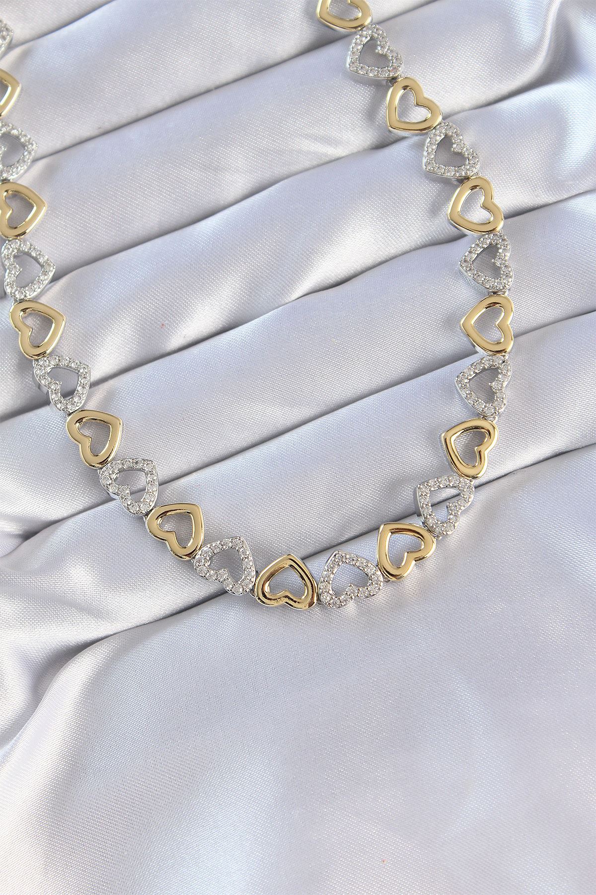 YRTCL Vip Seri Pirinç Çift Renk Zirkon Taşlı İçi Boş Kalp Tasarımlı Kolye