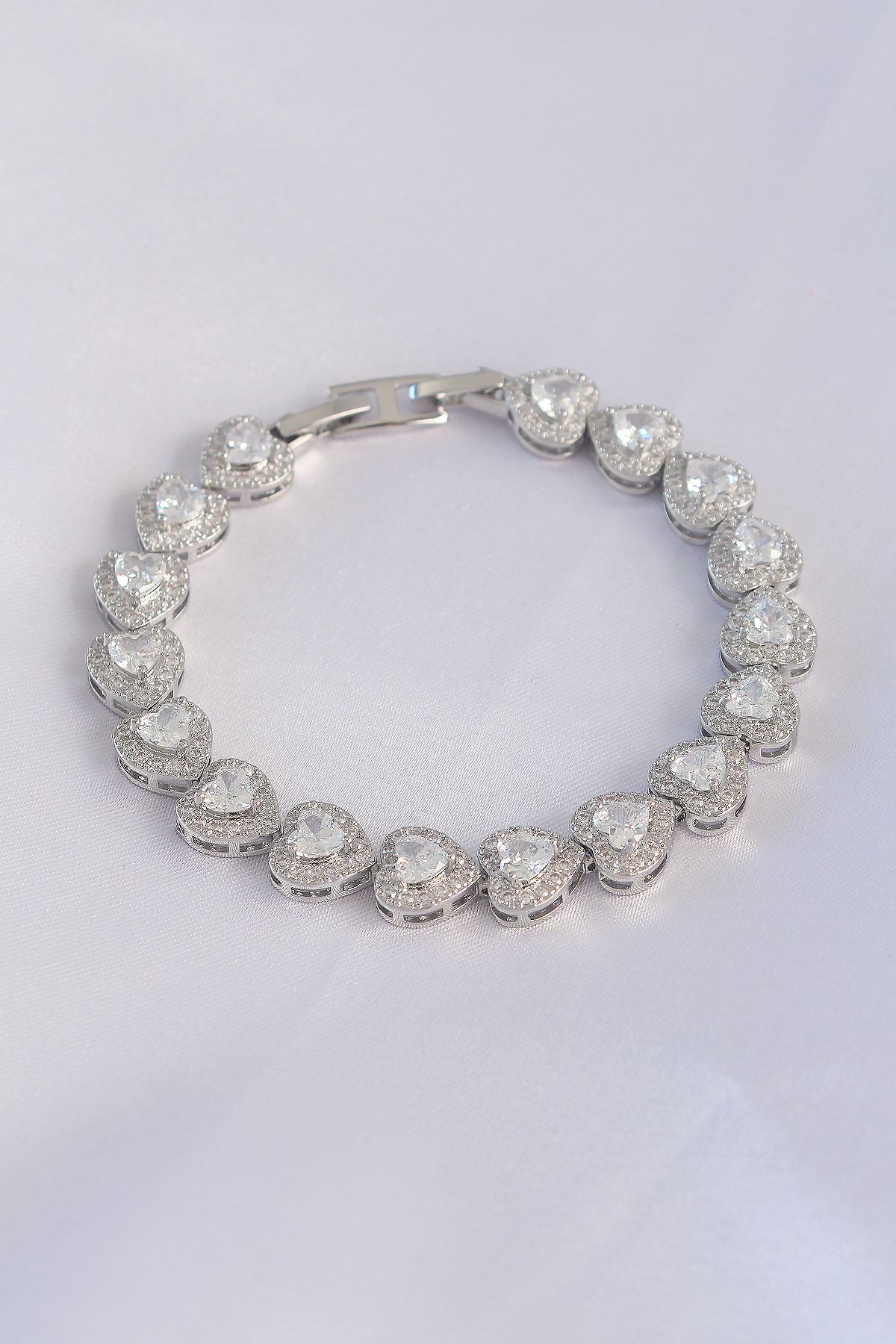 YRTCL Vip Seri Pirinç Zirkon Taşlı Gümüş Renk Kalp Model Bileklik